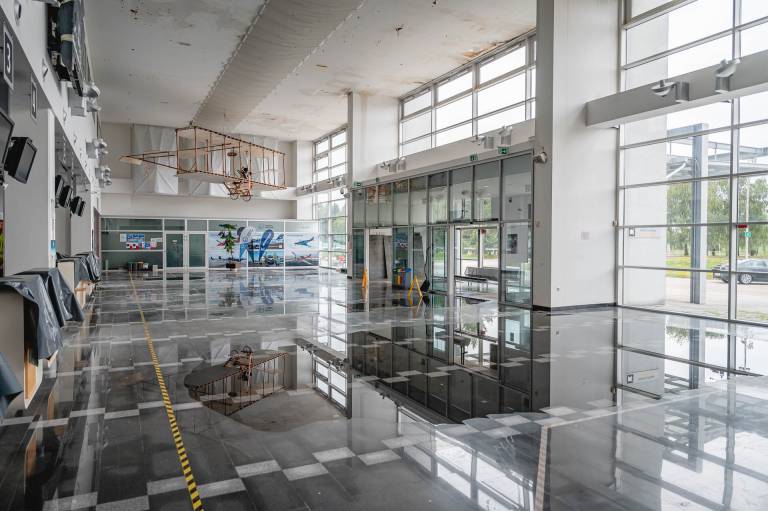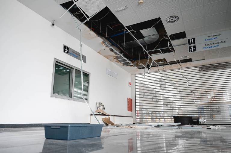 Ponedeljkovo neurje je ponovno, tokrat že drugič v slabem mesecu dni poškodovalo Letališče Edvarda Rusjana Maribor. Prostori so videti, kot da je padla bomba.