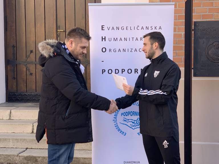 Kapetan NŠ Mura Alen Kozar, je v imenu kluba evangeličanski cerkvi v Murski Soboti predal dobrodelna sredstva.