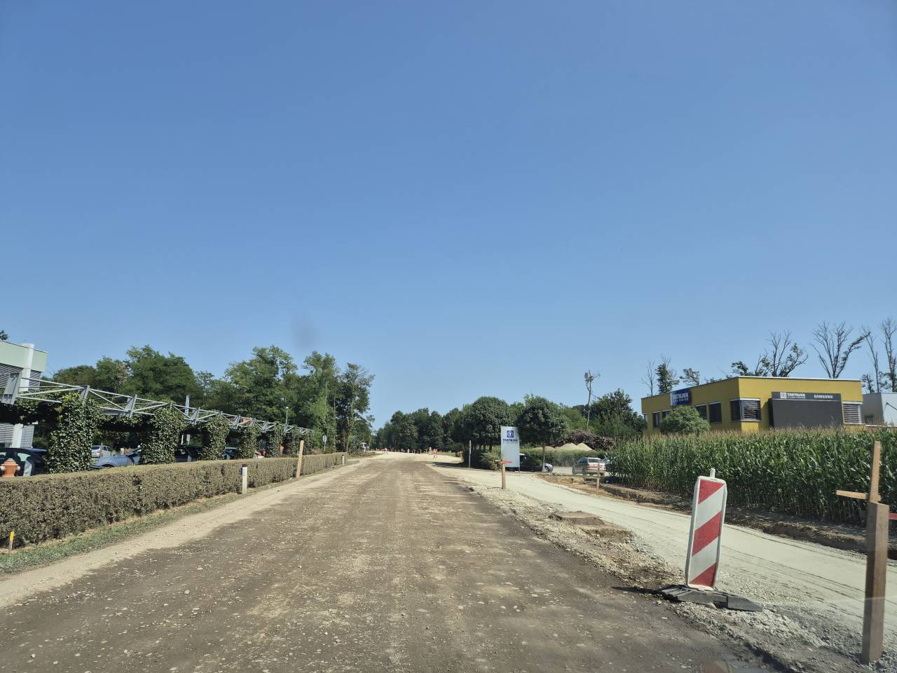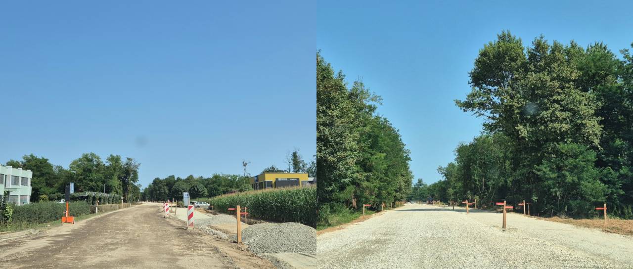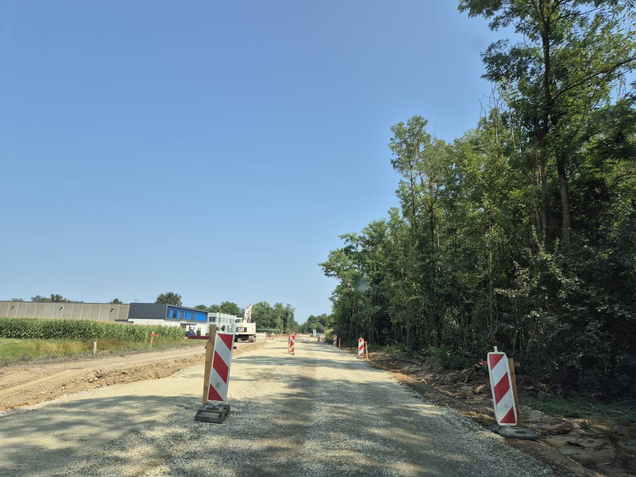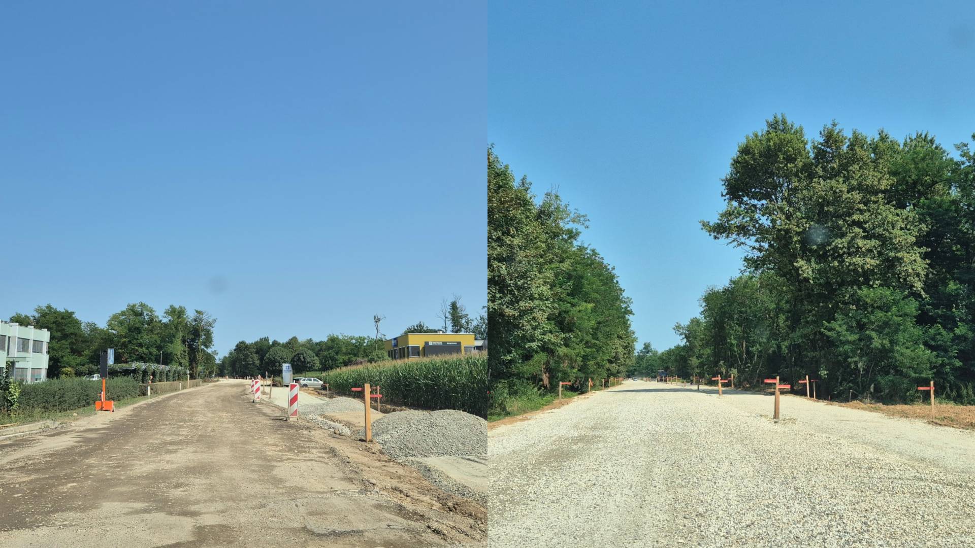 Ulica je od križišča za naselje Rakičan do podjetja Megras razkopana v celotni širini. Razvidno je tudi, v kakšni širini bo vzpostavljena kolesarska steza. V teku so tudi že dela za vzpostavitev mostu, ki bo omogočil izgradnjo dela kolesarske steze.