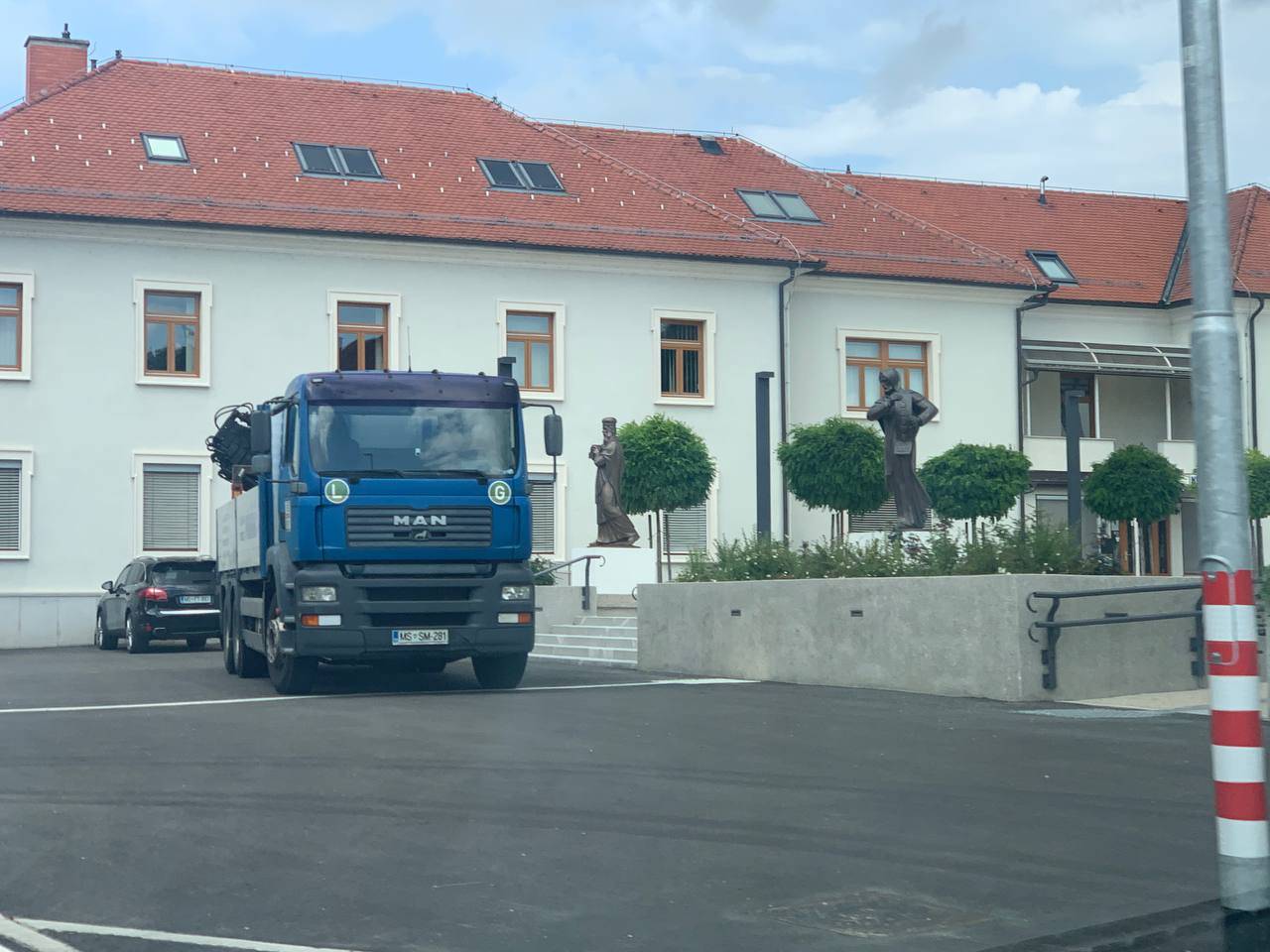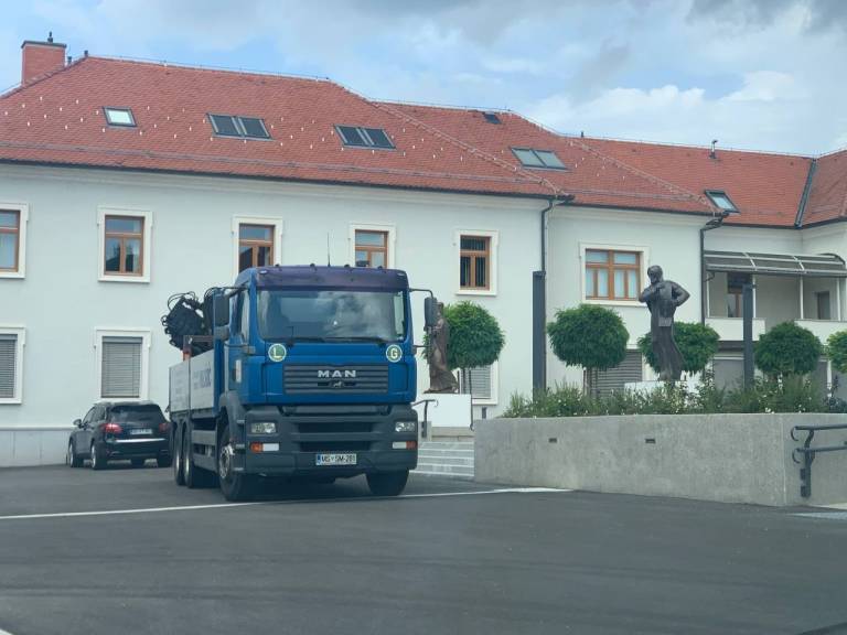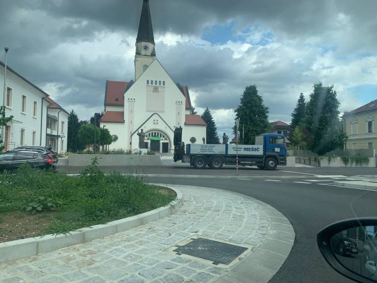 Na trgu pred stolno cerkvijo v Murski Soboti so postavili nov kip, ki bo odslej družbo delal svetemu Cirilu.
