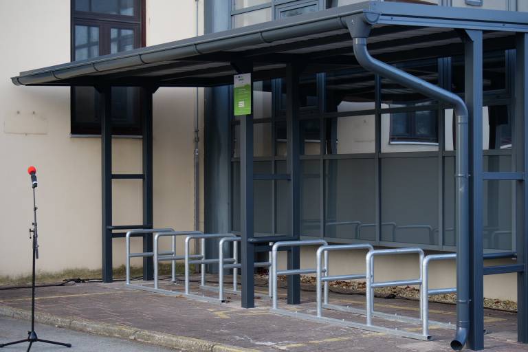 Slavnostno so otvorili novo kolesarnico, postavljeno koz del evropskega projekta, ki je sofinanciran iz programa Interreg Central Europe.