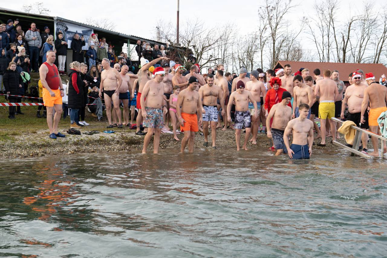 Ob 14. uri se je ob Soboškem jezeru zbrala skupnost, pripravljena na edinstveno (in ledeno) doživetje ob začetku novega leta.