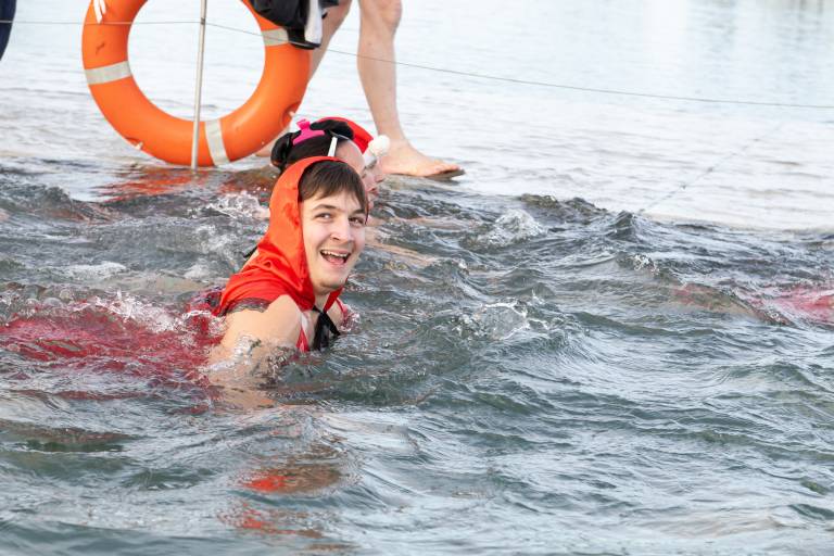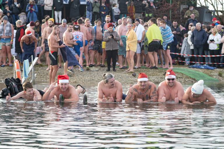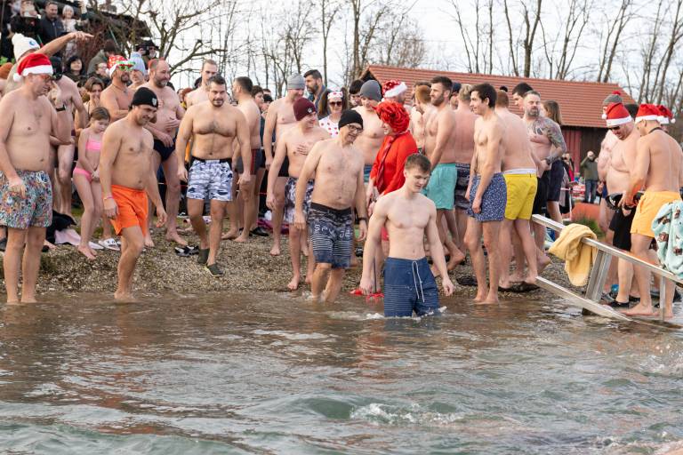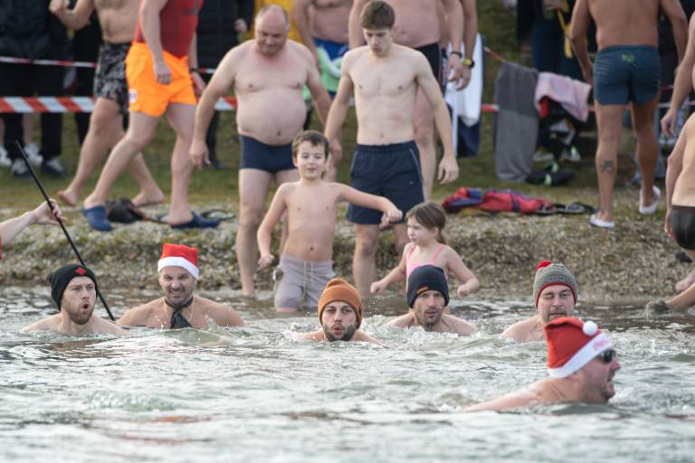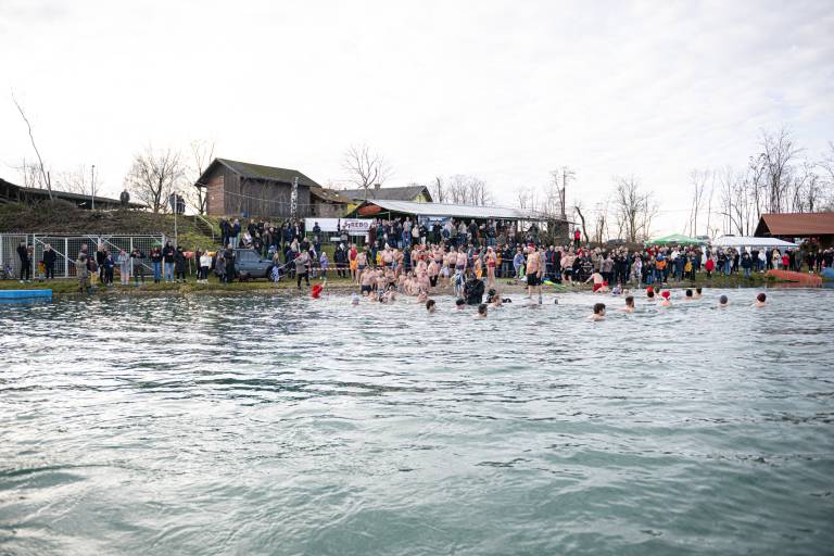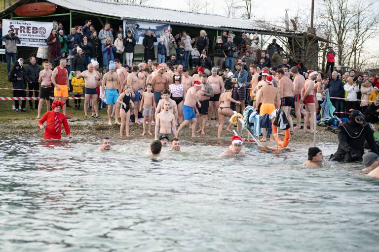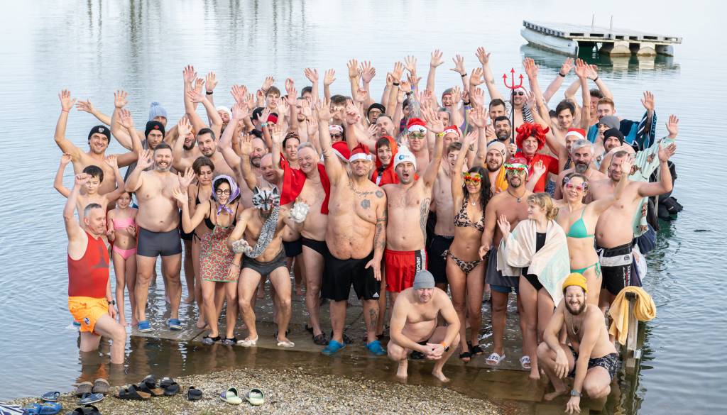Ob 14. uri se je ob Soboškem jezeru zbrala skupnost, pripravljena na edinstveno (in ledeno) doživetje ob začetku novega leta.