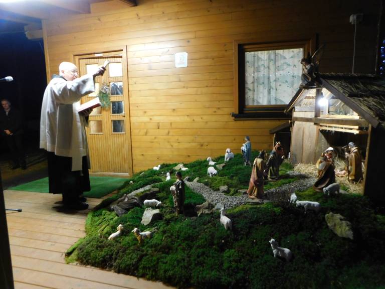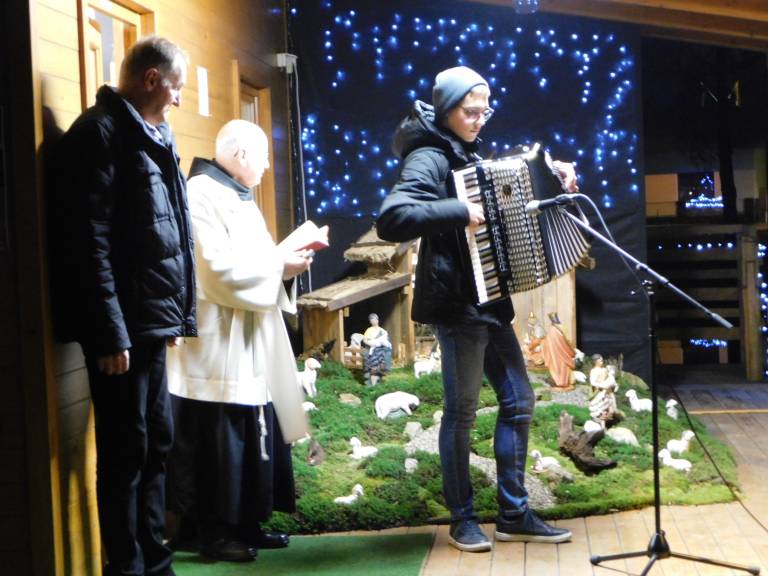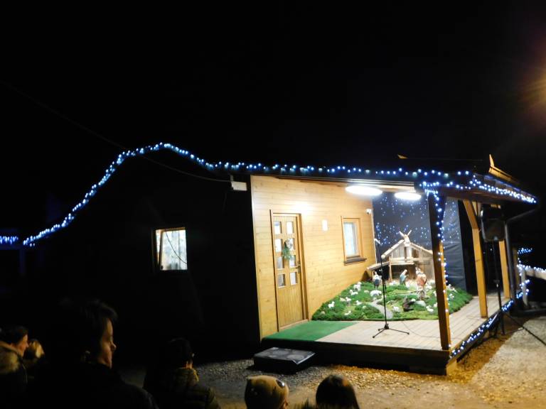 Božiček se pelje z osvetljenim kolesom, lestvijo in darili za najmlajše. Blagoslov jaslic je opravil duhovni pomočnik župnije Turnišče, Janez Kurbus, ki je zbranim nameni nekaj besed o Božiču in njem pomenu.