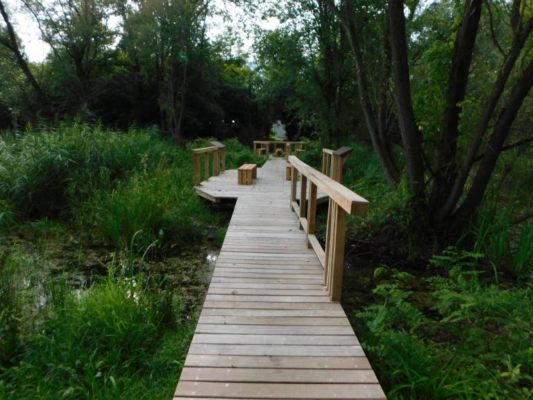 Nad mrtvico so uredili leseno sprehajalno pot, obiskovalci se lahko sedaj mirno sprehodijo in opazujejo površino in živali v vodi.