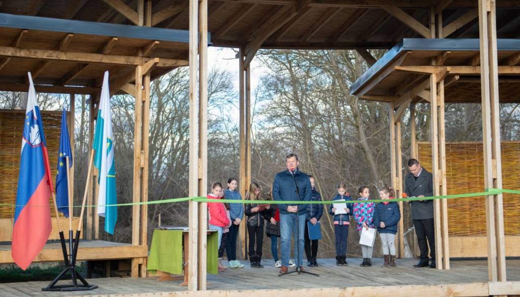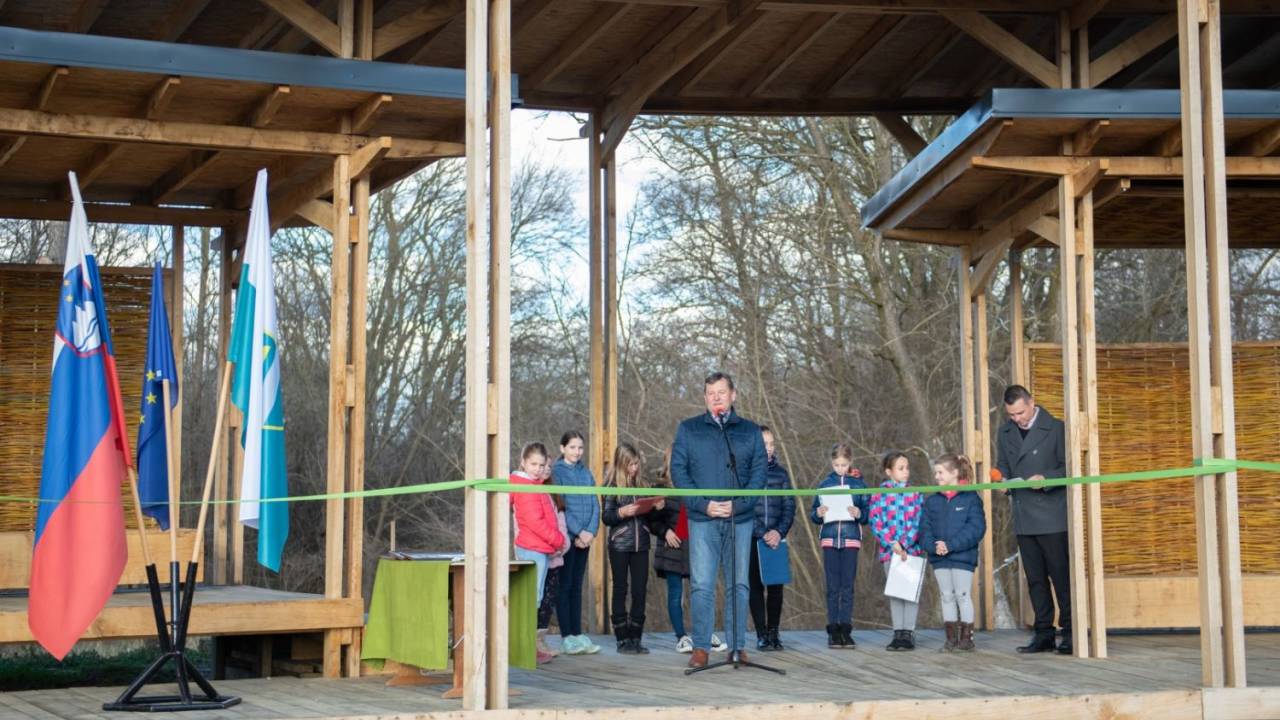 Po dopoldanskem programu, je včeraj 28.02.2020, sledil še popoldanski del, kjer je župan Aleksander Jevšek slovesno odprl učilnico na prostem. V okviru projekta je soboška občina s pomočjo evropskih sredstev iz programa Interreg uredila vstopno točko ob gramoznici v Krogu, učilnico na prostem, interpretacijsko doživljajsko točko ob Muri pri brodu ter poti do in ob Muri.