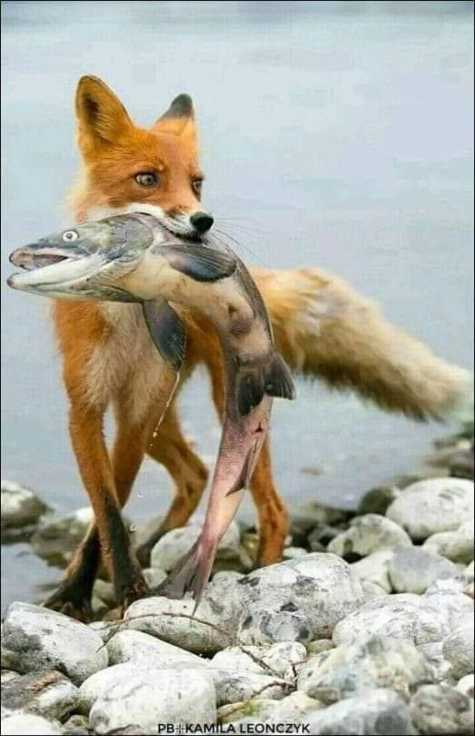 Gre za objavo, v kateri je uporabnik Facebooka objavil fotografijo lisice, ki v gobcu drži lososa. Zraven je pripisal: »Lisica z ribo ob reki Muri.«