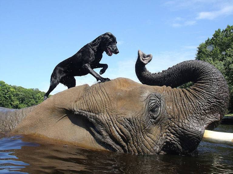 Ker so številni uporabniki fotografiji lisice z ribo verjeli, se je na njihov račun pošalil še drug uporabnik, ki je v komentar zalepil fotografijo slona, na katerem stoji pes.