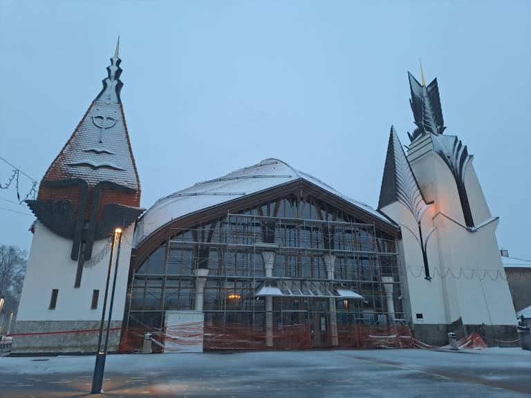 Objekt, ki predstavlja enega ključnih kulturnih prostorov v mestu, je obdan z gradbenim odrom, delovišče pa je ustrezno označeno in zavarovano.