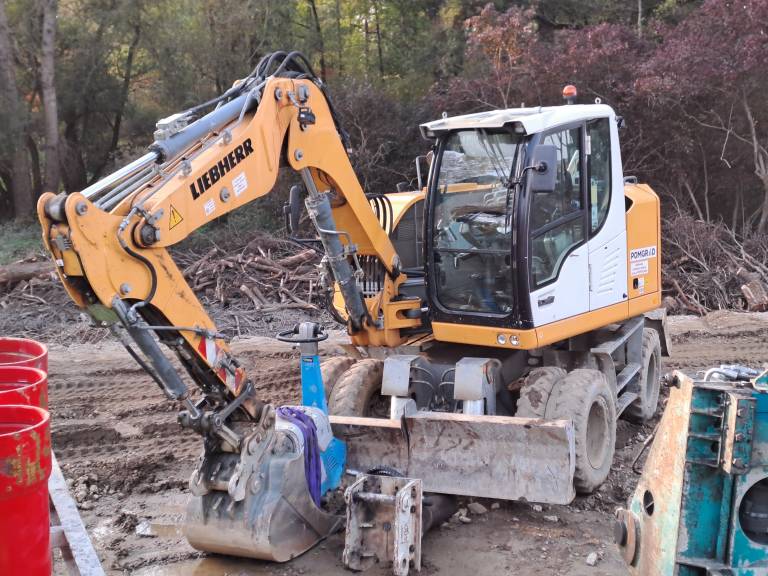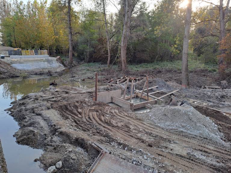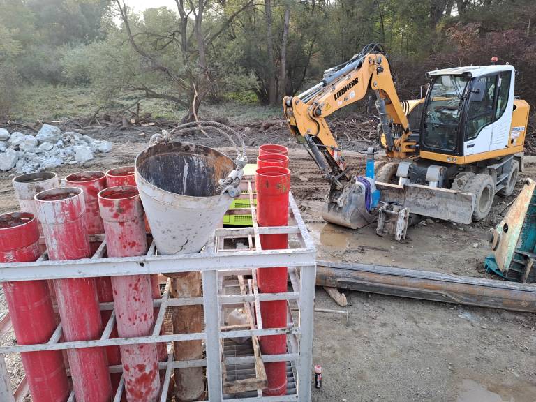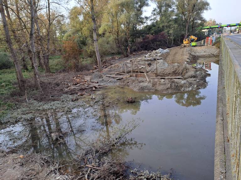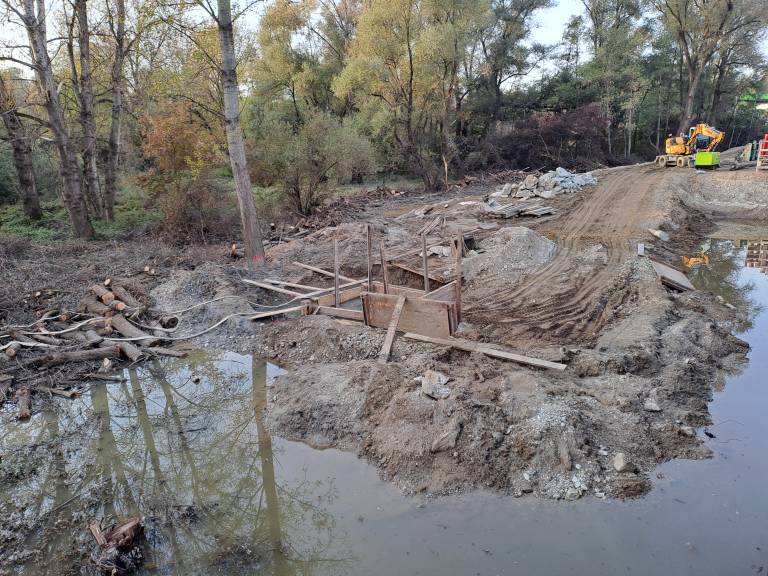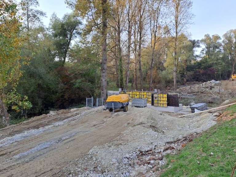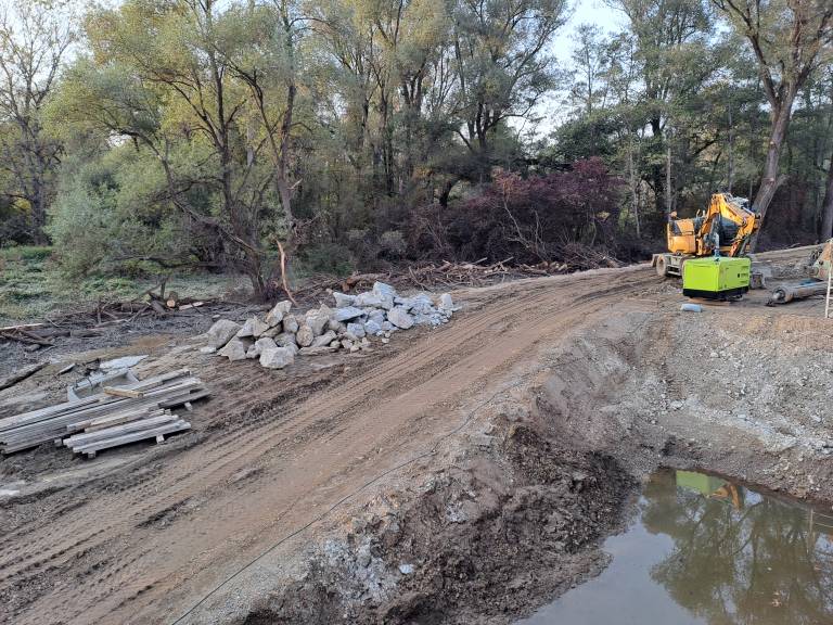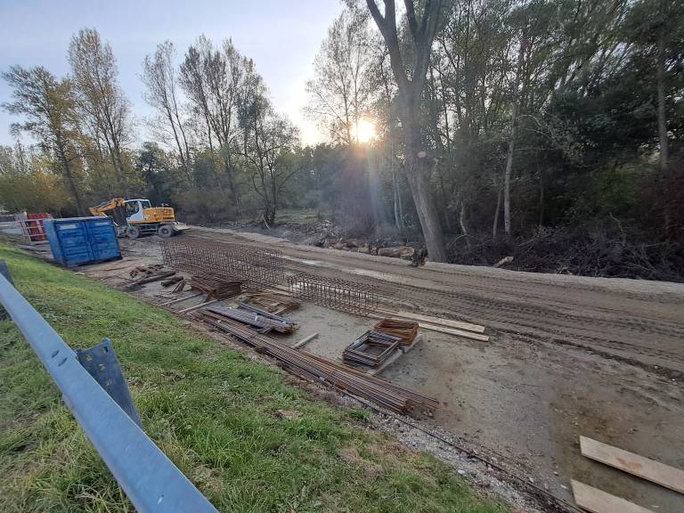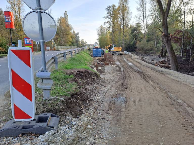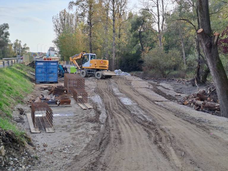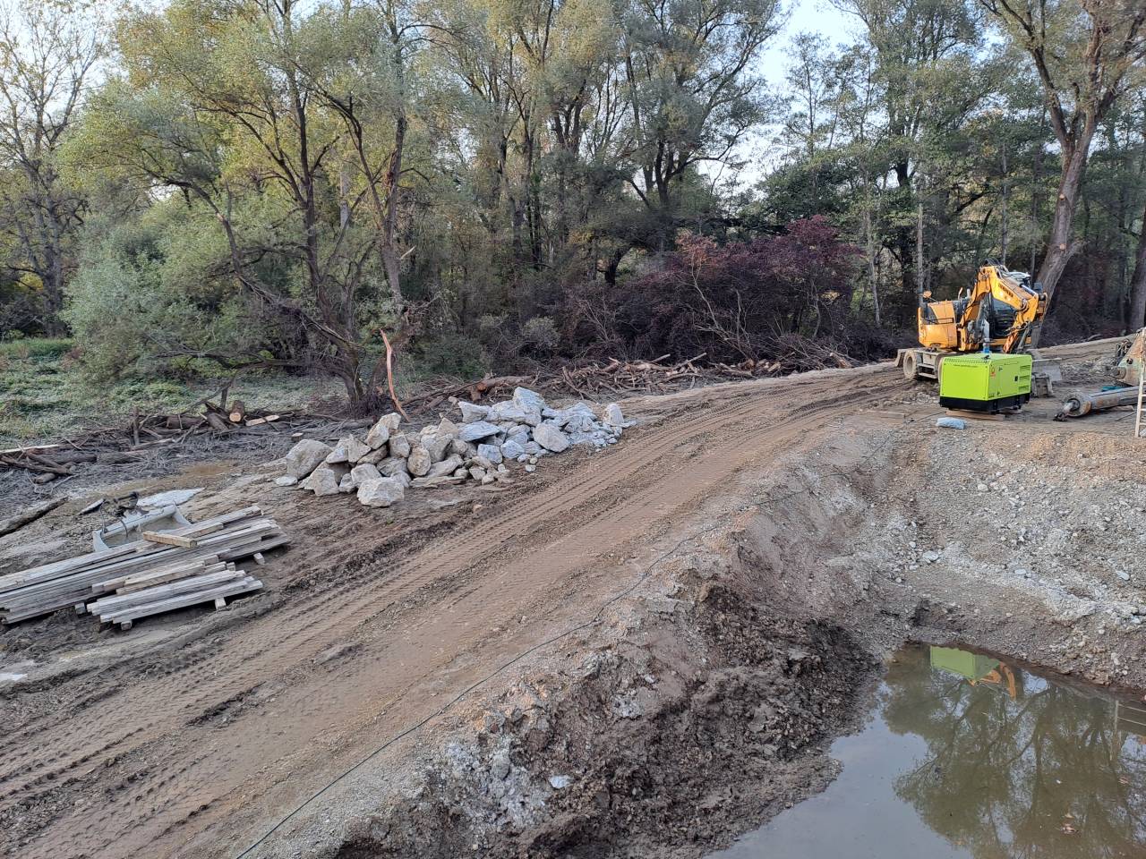 Obnovitvena dela na inundaciji med mejnim prehodom Petišovci in mostom čez reko Muro.