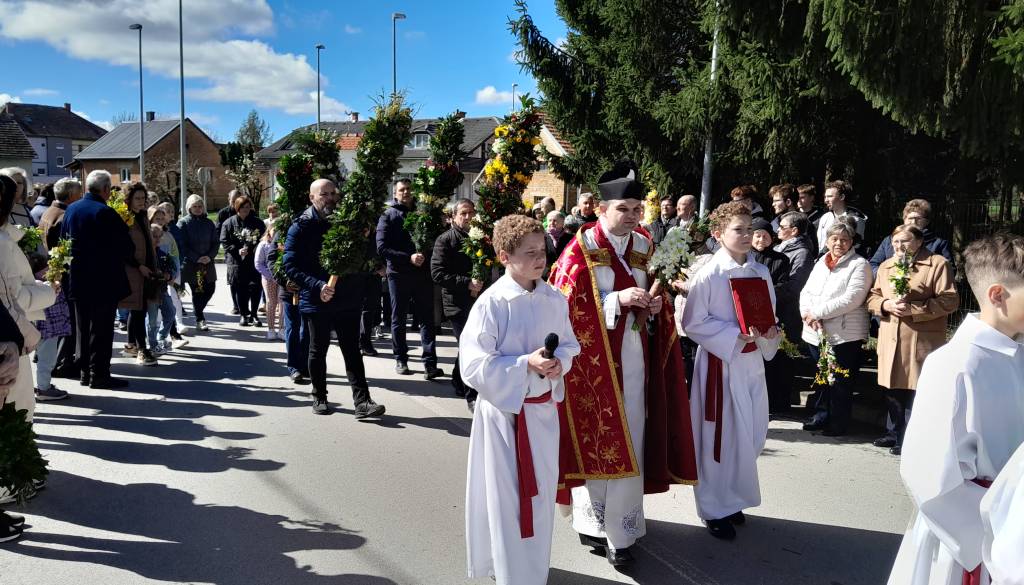 Na cvetno nedeljo, 24. marca, je bilo posebej slovesno tudi v župniji Bogojina. Verniki iz župnije so se dopoldne zbrali pri Pilu pod župnijsko cerkvijo. Dan prej so v vsaki vasi po tradiciji izdelali 1,5 metra visok presmec iz različnega zelenja in rož.
