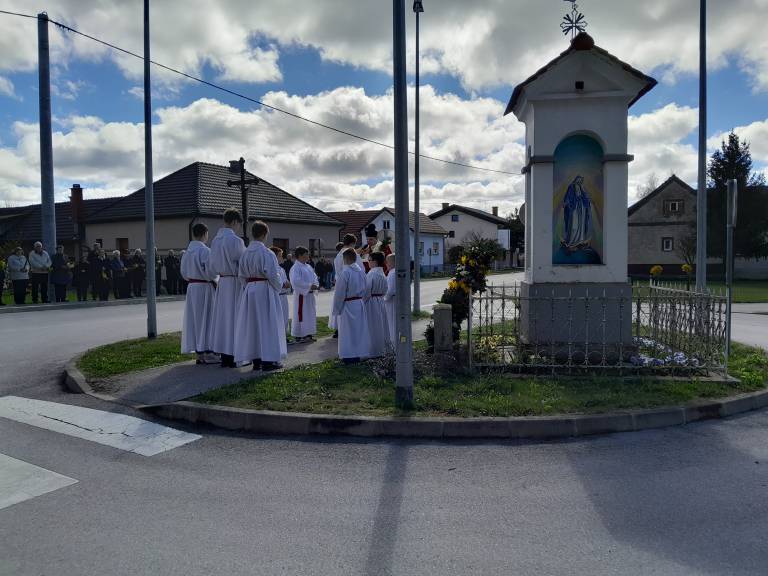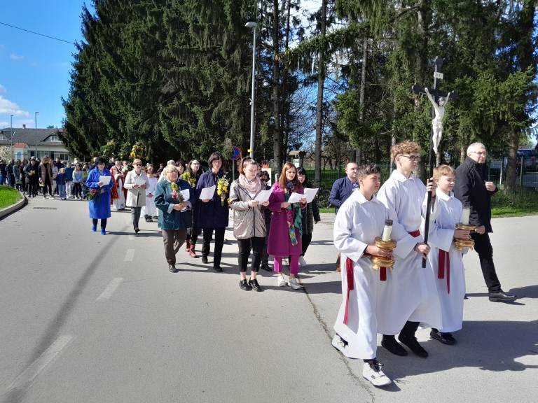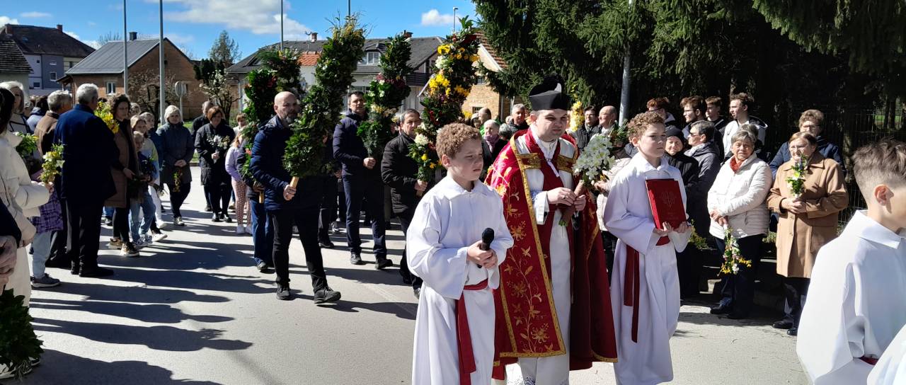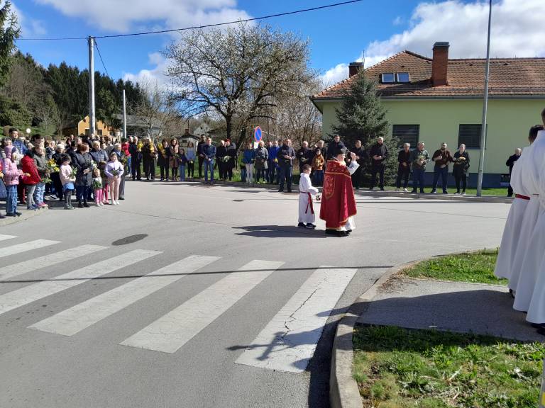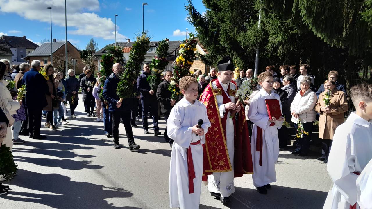 Pred odhodom v župnijsko cerkev je domači župnik Andrej Lažeta ob navzočnosti ministrantov opravil cerkveni obred blagoslova presmecev. Za to priložnost so zapele cerkvene pevke Talita iz župnije Bogojina.