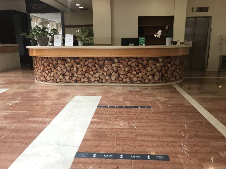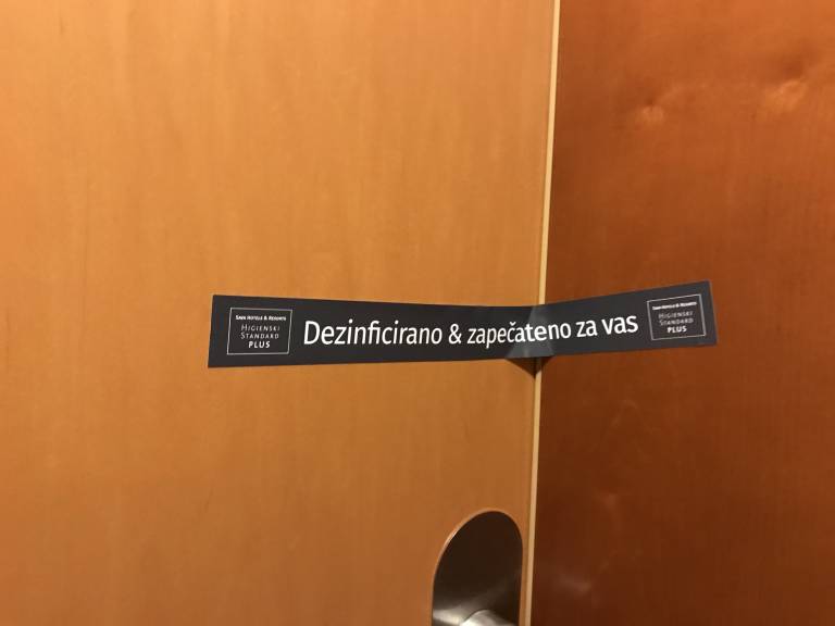"Omejitve veljajo v skupnih prostorih, kjer je več ljudi. Še zmeraj velja razdalja metra in pol. To velja tako v avli, bifeju, kot v restavraciji. Prilagodili smo postrežbo jedi, in sicer na način, da je najbolj varen za zaposlene in goste. Tudi pri vstopu na kopališče velja poseben režim, gostje si namreč izmerijo temperaturo. Na omarice nalepimo posebne nalepke, da gostje vedo, katere so dezinficirane in jih lahko uporabljajo. Vsi ležalniki so na predpisani razdalji. Osebje skrbi za to, da je razdalja med ljudmi v vodi vsaj dva metra, izjema so gostje iz istega gospodinjstva".