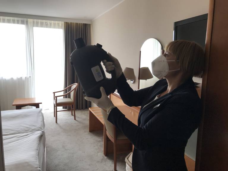 "Pripravili smo jim dobrodošlico, in sicer paket, v katerem je maska, higienski robčki in dezinfekcijsko sredstvo. Sobe dezinficiramo na prav poseben certificiran način, ki ima certifikat za preprečevanje širjenja Covid - 19 virusa".
