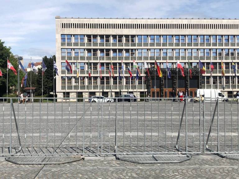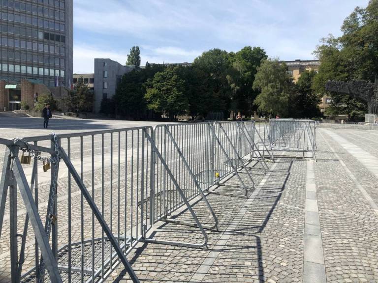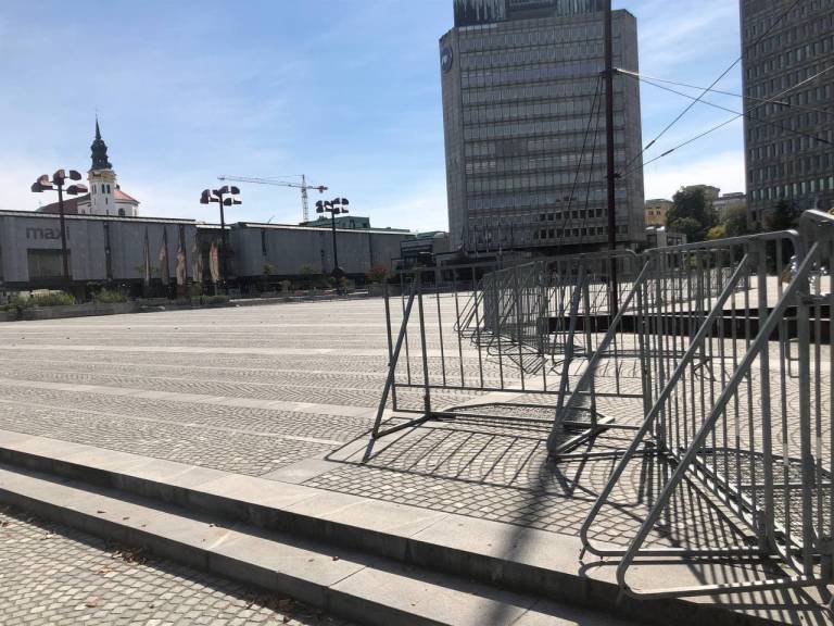 Na Trgu Republike že stojijo ograje. Za danes je ponovno napovedan protest.