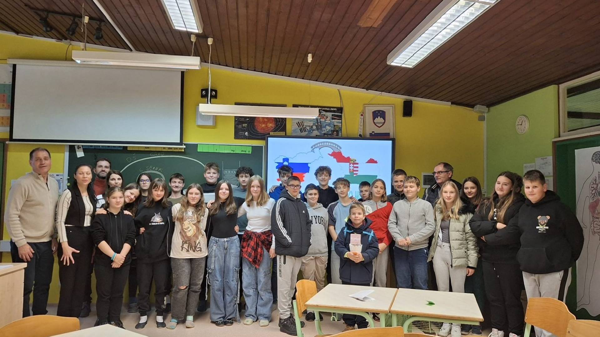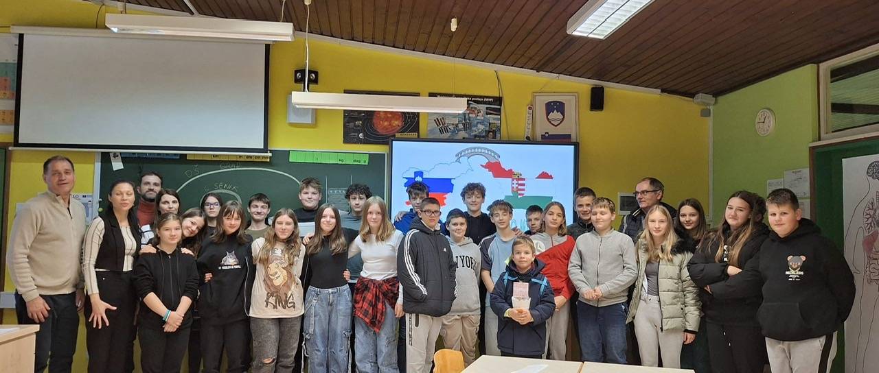 Obiskalo jih je skupno 12 učencev obeh šol, ravnateljica Dvojezične osnovne šole in vrtca Števanovci Agica Holecz, učitelj slovenščine Ladislav Domjan ter učiteljica slovenščine Beata Bajzek Safar z Dvojezične osnovne šole Jožefa Košiča Gornji Senik.