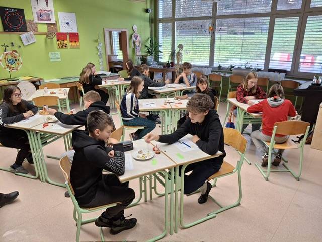 Po uvodnem srečanju in prijetnem pozdravu so se učenci s pomočjo kemijske reakcije razdelili na dve skupini, zeleno in rdečo (barva reagenta), ki sta se nato zbrali v naravoslovni in tehnični učilnici, kjer sta učitelja Valerija Danč, vodja in organizatorica srečanja, ter učitelj Andrej Cifer, z obema skupinama izvedla aktivnosti na omenjeno temo.
