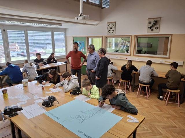Istočasno so učenci rdeče skupine v tehnični učilnici šole pod mentorstvom učitelja Andreja Cifra sodelovali pri aktivnostih s področja medkulturnosti.