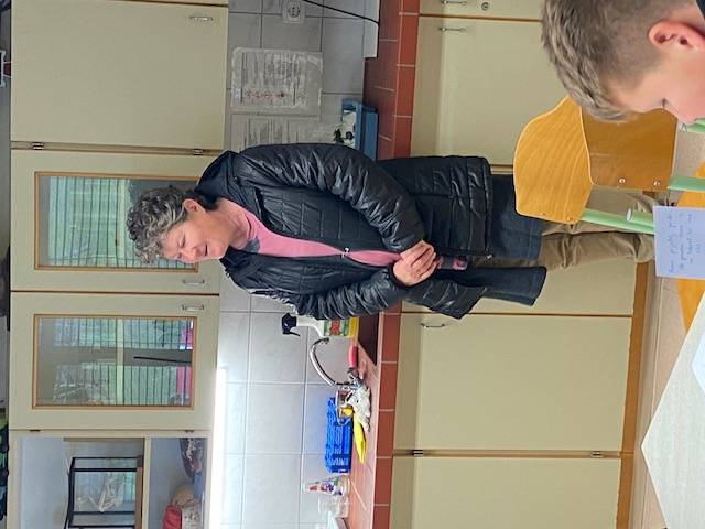 Učenci zelene skupine so nato v parih nadaljevali aktivnosti pod mentorstvom učiteljice Valerije Danč z učenjem o zgradbi semen enokaličnic in dvokaličnic, kalitvi, pogojih za kalitev, prehranjevanju kalečih rastlin pod zemljo in nad njo.