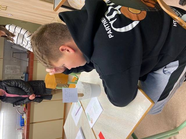 Sledil je eksperiment dokaza škroba v živilih in sajenje semen ameriškega slamnika, melise in ognjiča v že pripravljene lončke, pri čemer so si učenci medsebojno pomagali in sodelovali.