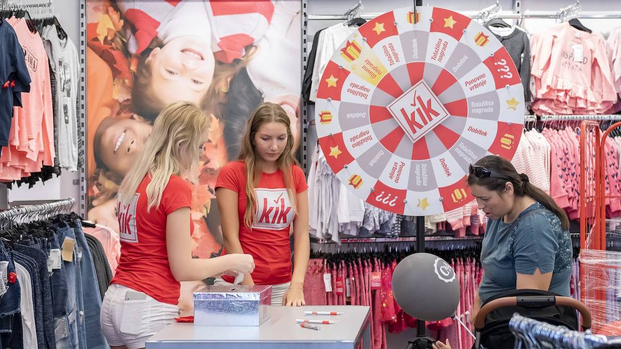 Za obiskovalce so poskrbeli s številnimi presenečenji. Pričakale so jih hostese in jih popeljale skozi dogajanje v trgovini ter jim ponudile možnost sodelovanja v KiK-ovi nagradni igri. Zavrteli so lahko kolo sreče in sodelovali v nagradni igri »ujemi smerokaz«, ali se preizkusili na modni pisti, kot KiK modeli. Najmlajši so lahko uživali v cirkuški animaciji in različnih spretnostnih trikih ali pa so se prepustili izboru zanimivih otroških poslikav. V družbi otrok pa se je tudi zaplesalo.