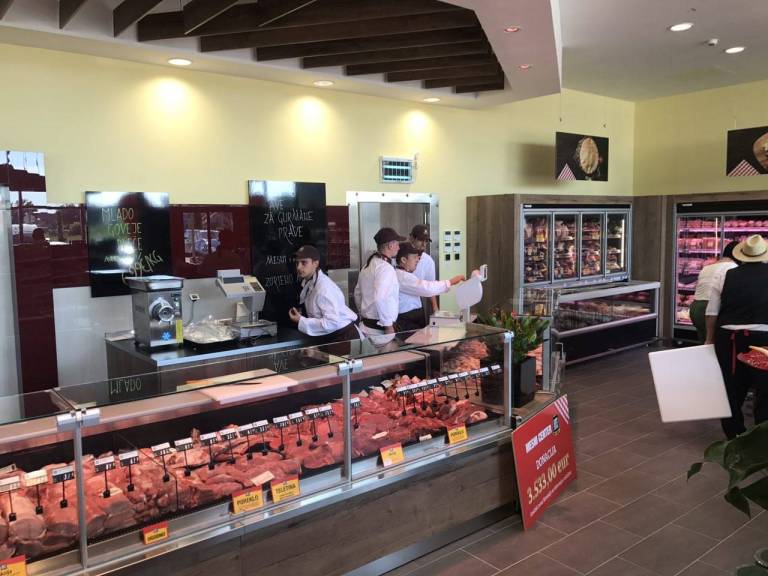 Celoten asortiment vključuje 1.000 artikov. Na področju svežega mesa bodo kupci lahko izbirali med piščančjim, svinjskim, govejim, telečjim, kunčjim, jagnjetino in divjačino. Vsakodnevno bodo pripravljali izjemno raznoliko ponudbo mesnih pripravkov, predvsem različne vrste rolad, začinjenih kosov mesa in nabodal.