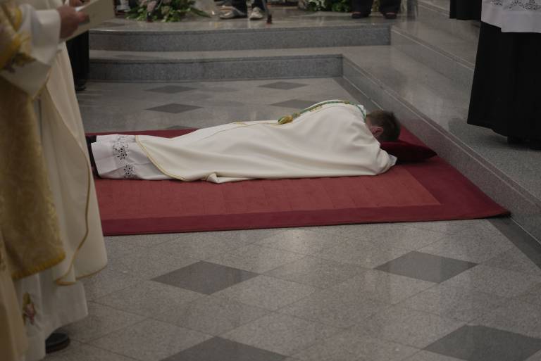 Zakaj je novi soboški škof Janez Kozinc med posvečenjem ležal na tleh?