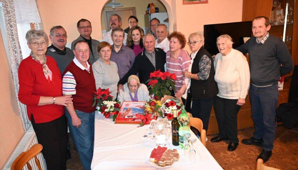 Peto najstarejšo osebo v Sloveniji so prišli pozdravit Natalija Nedok Roškar, podžupanja občine, predsednik in član občinskega odbora rdečega križa Jožef Časar ter predsednik in član društva upokojencev Darko Perko in Ivan Herič.