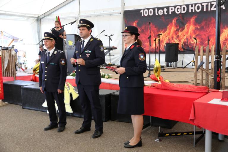 Stoletnico Prostovoljnega gasilskega društva Hotiza so zaznamovali slavnostna predaja novega vozila, društvenega prapora in prenovljen dom.
