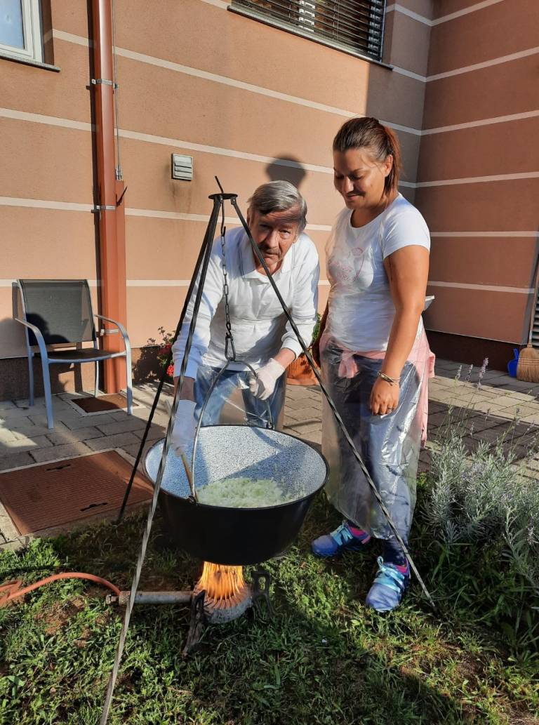Ko je bilo vse kuhano so dodali še razne začimbe, kot je paprika, česen, lovorjev list in druga zelišča. Pri sestavinah in pri kuhanju je sodelovala socialna delavka doma.