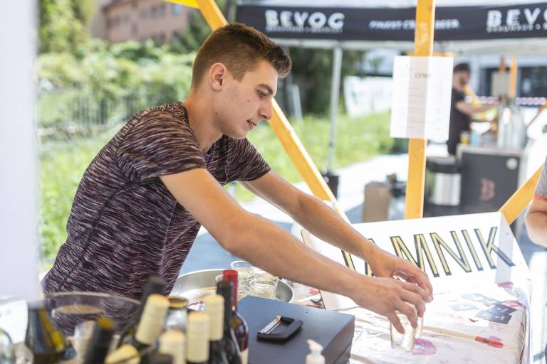 Za žlahtno kapljico skrbijo v Vino Jamnik, za potešitev žeje pa so na voljo še craft zvarki mikropivovarne Bevog in seveda tudi brezalkoholna pijača.