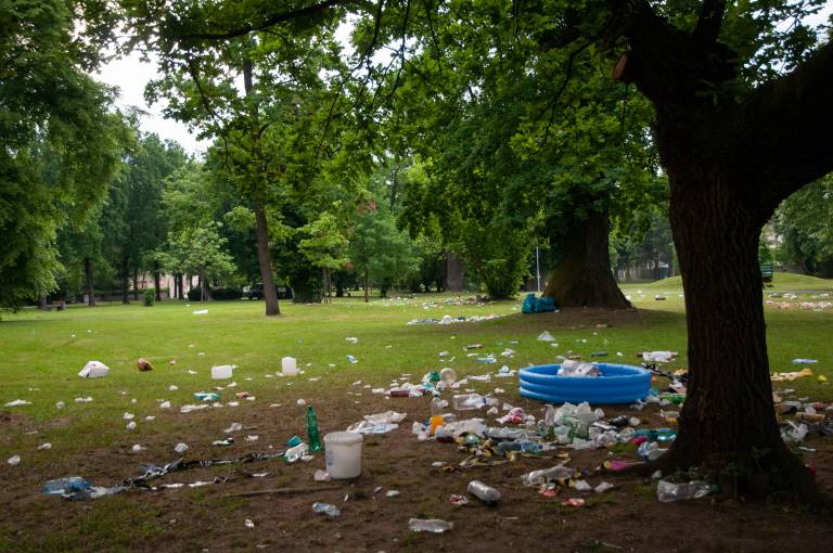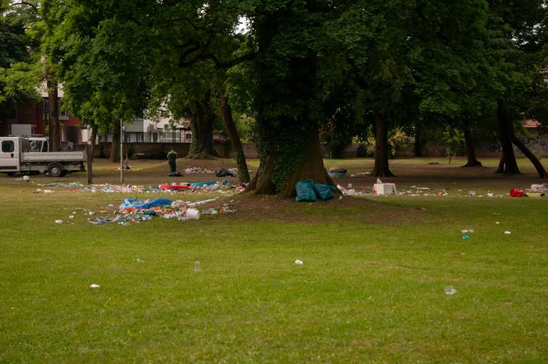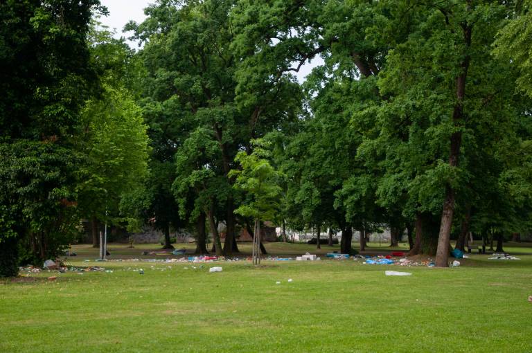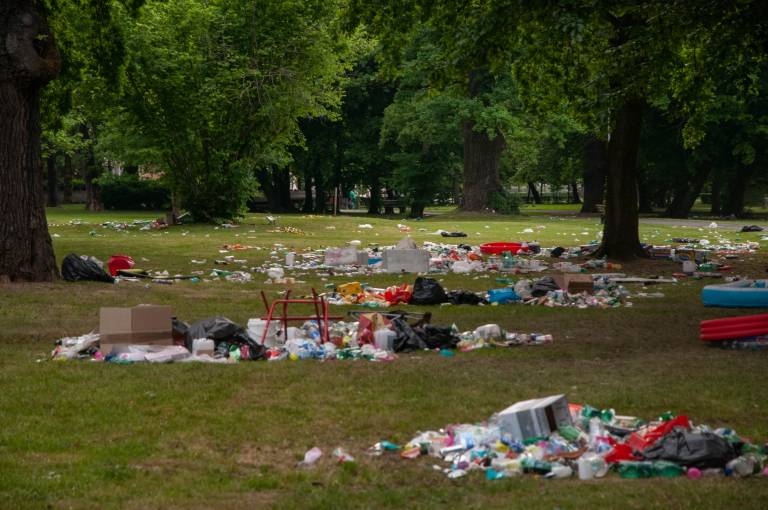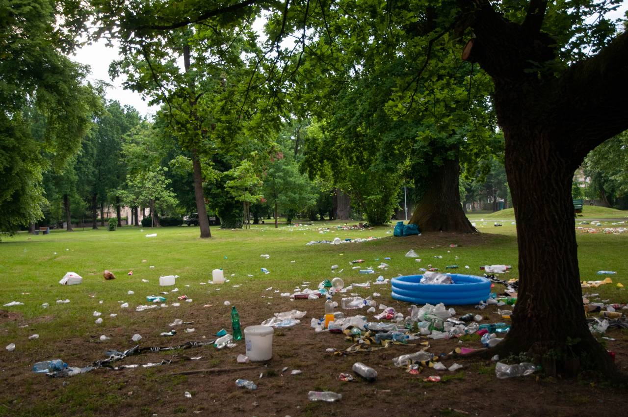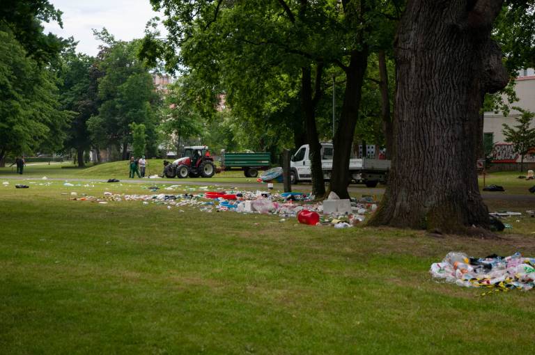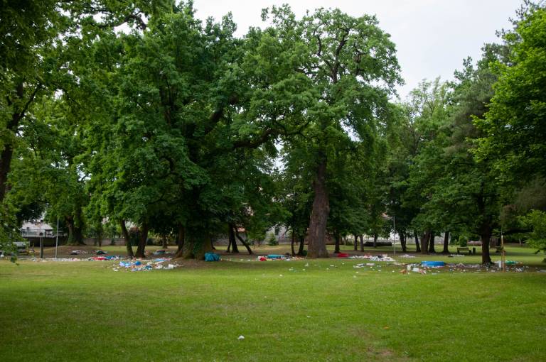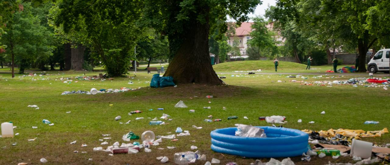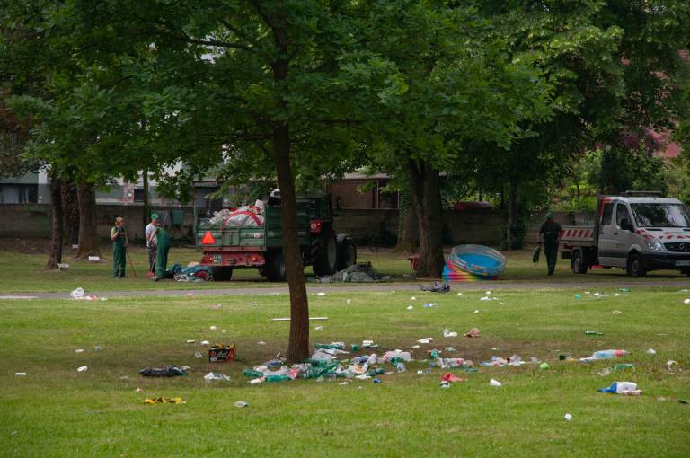 Veselo dogajanje v parku je trajalo pozno v popoldne, kljub nasmejanim obrazom dijakov in lepemu zaključku srednje šole, pa situacija danes zjutraj ni bila ravno bleščeča.