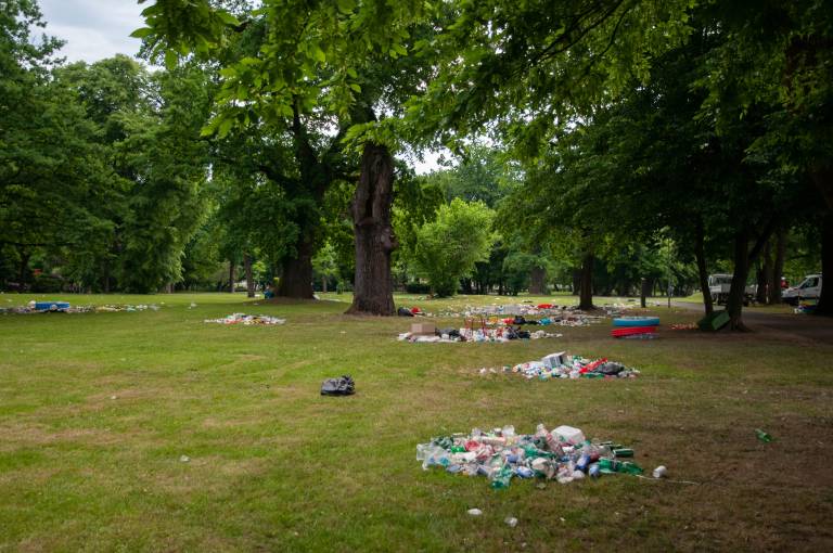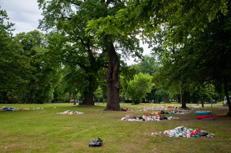 Kar pa ne pomeni, da lahko smeti puščajo vsepovsod po parku. Kozarce, plastenke, vrečke in ostalo kramo, ki so jo včeraj pridelali, bi lahko tudi pospravili.