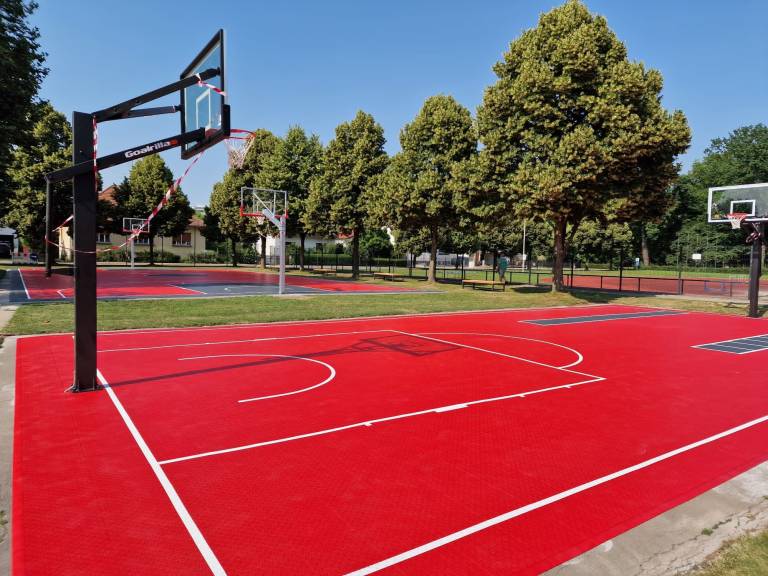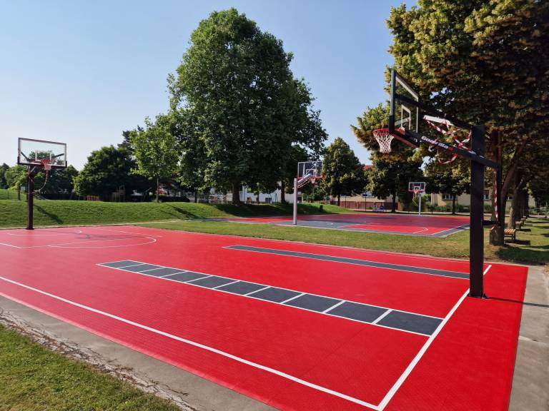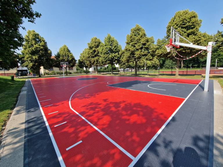 Kot je razvidno iz fotografij, je košarkarsko igrišče izredno sodobno in takoj pade v oči. Sestavljeno je iz dveh igrišč, enega manjšega in enega večjega, na tleh pa so posebne rdeče in sive plošče, koši so prav tako popolnoma novi ter v beli in črni barvi.