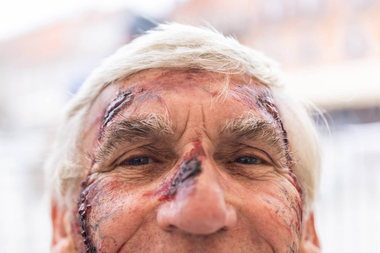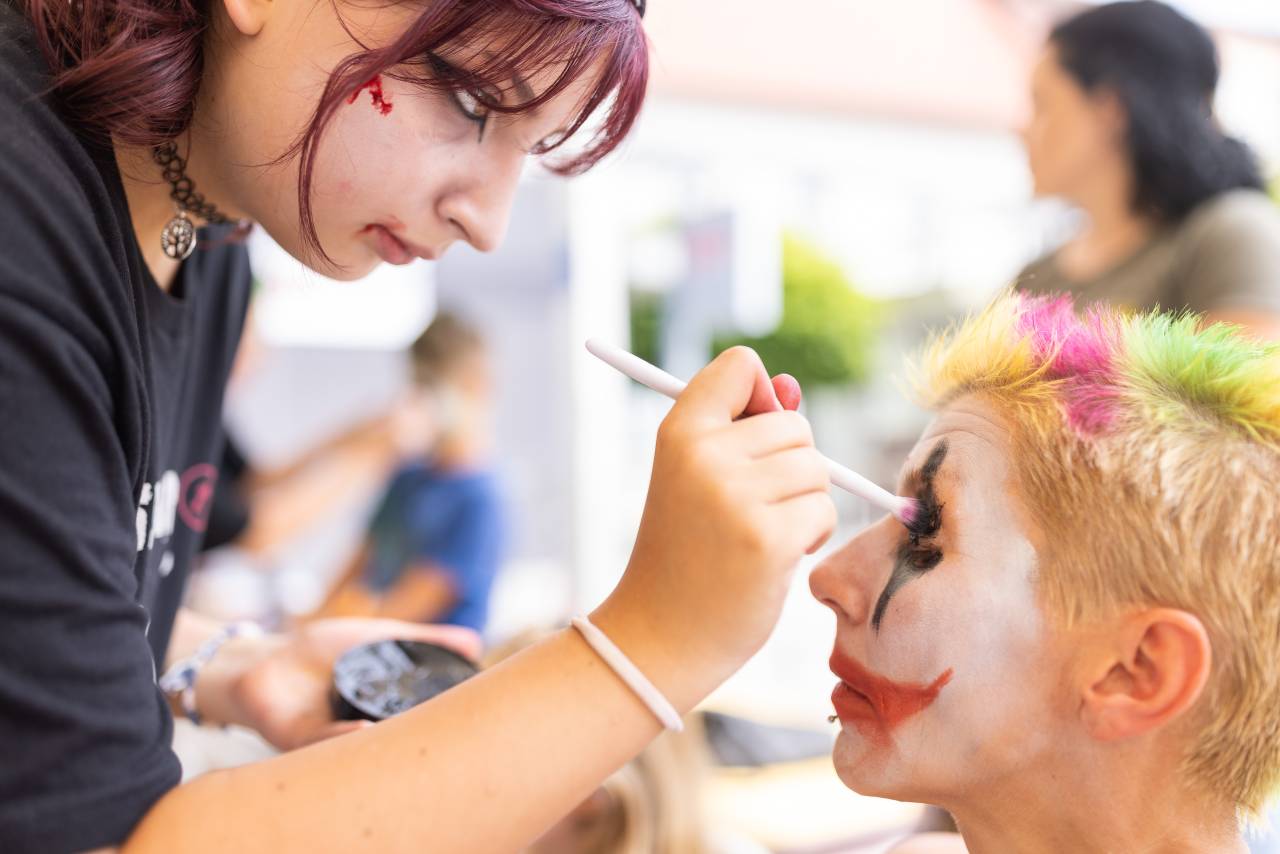 Zombiji pa so glavni trg v Ljutomeru tradicionalno preplavili tudi danes. Ob 12. uri je bila na sporedu delavnica Maskiranje za Marš zombijev pod vodstvom mojstrice Mateje Naberšnik s pomočjo udeležencev delavnice in ob izbrani glasbeni spremljavi.