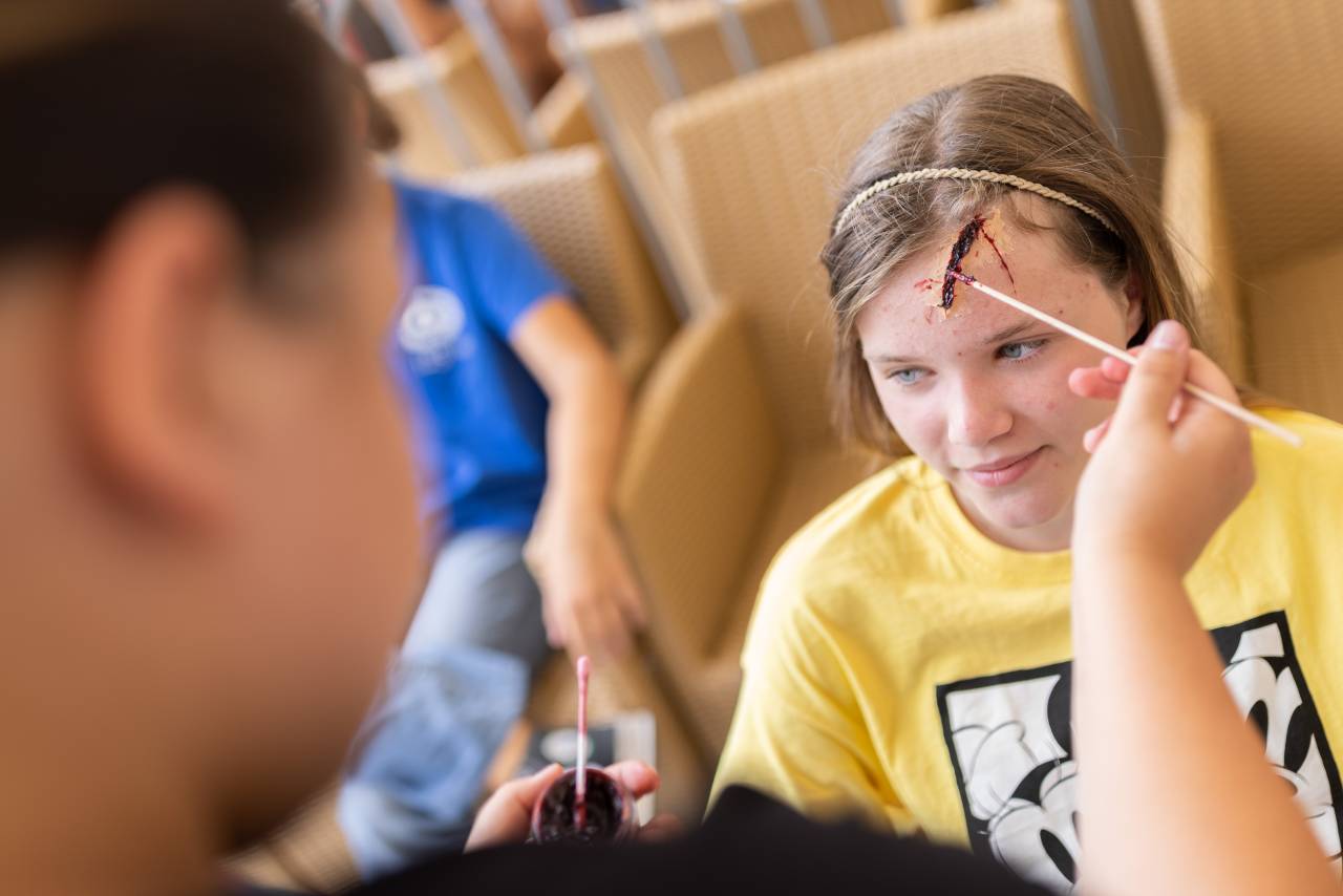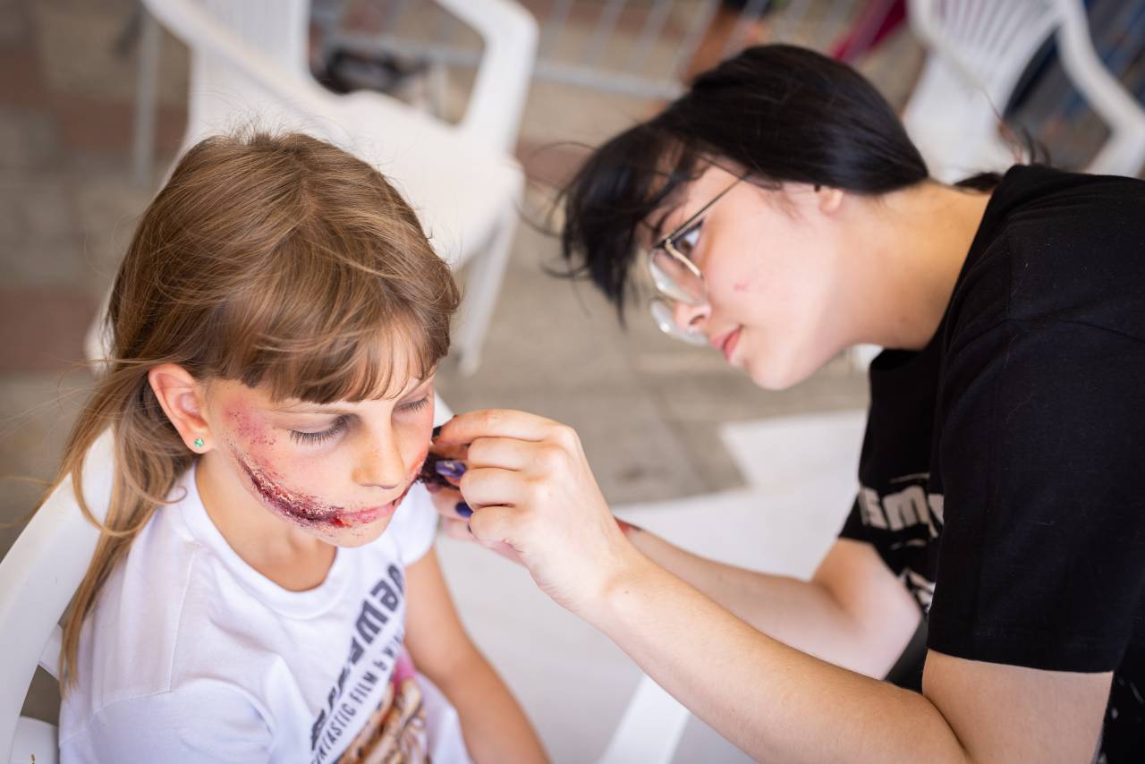 Umetniki ličenja so na delavnici ustvarili prave strašljive zombi maske, posamezniki so lahko izbirali med tremi različno zahtevnimi maskami.