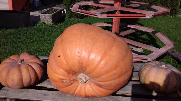 Pri družini Bakan v Dokležovju so bili letos "obdarjeni" z bučami velikankami". Kot nam je povedala Tanja Bakan je najtežja buča tehtala 38 kilogramov, manjše buče pa so na tehtnici pokazale od 19 do 25 kilogramov.