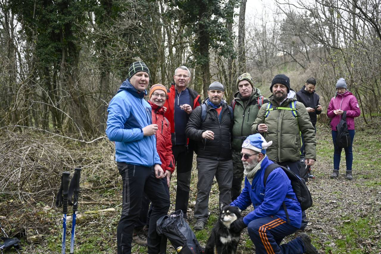 Udeležencev je bilo blizu sedemdeset, kar je odličen rezultat. Pot je vodila ob mejnih kamnih na vrh goric nad Dolgo vasjo, nato pa so pohodniki zavili v gozd in sledili meji.