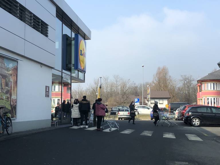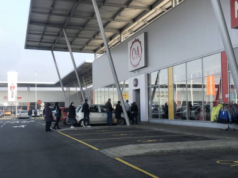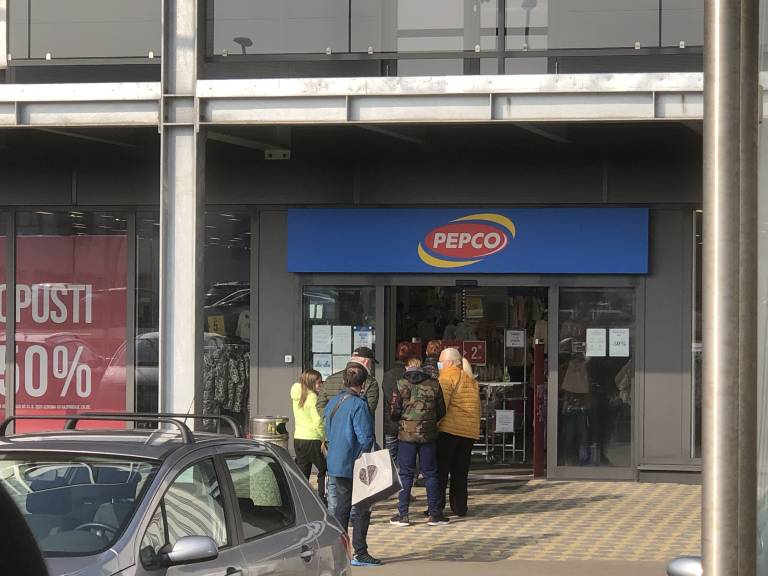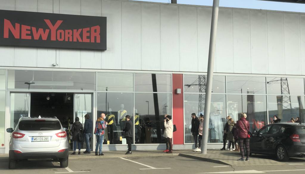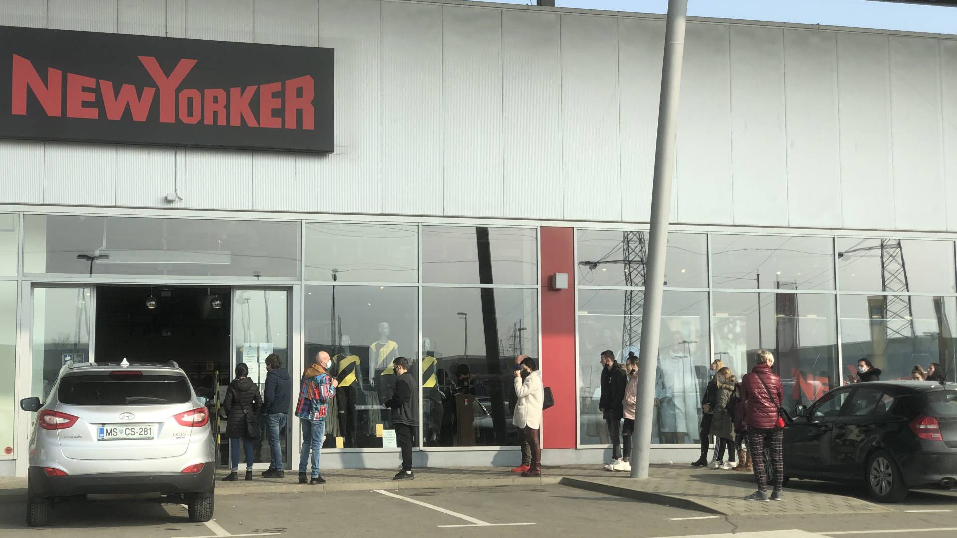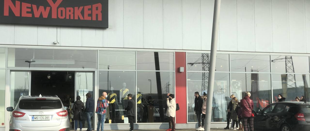 Pred trgovskimi centri v Murski Soboti tako že vso dopoldne spremljamo gnečo pred prodajalnami.