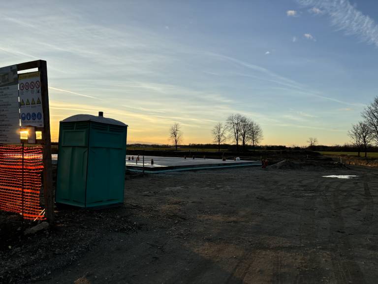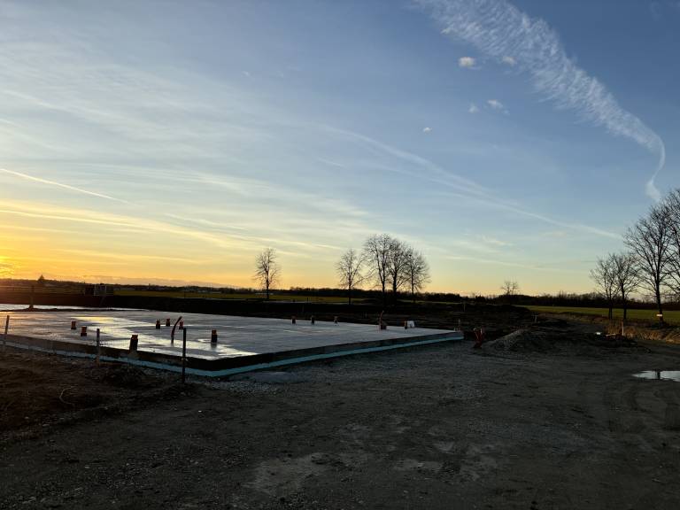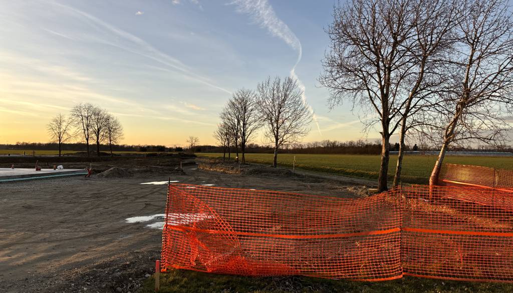 Dela na gradbišču so že v polnem teku. Postavljeni so temelji za glamping hišice, premeščeni pa so tudi drugi objekti na posestvu, kot je hlev za živali.