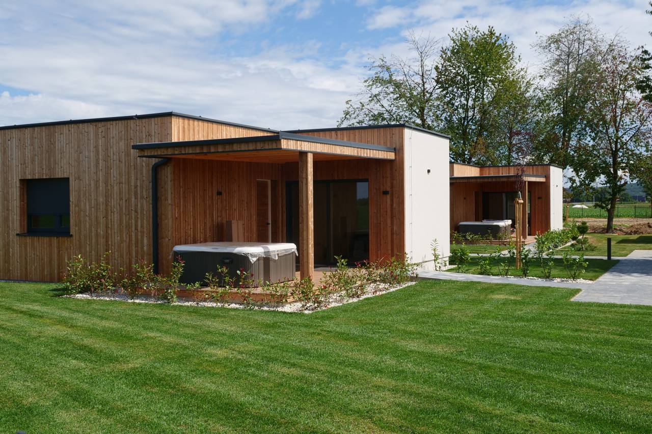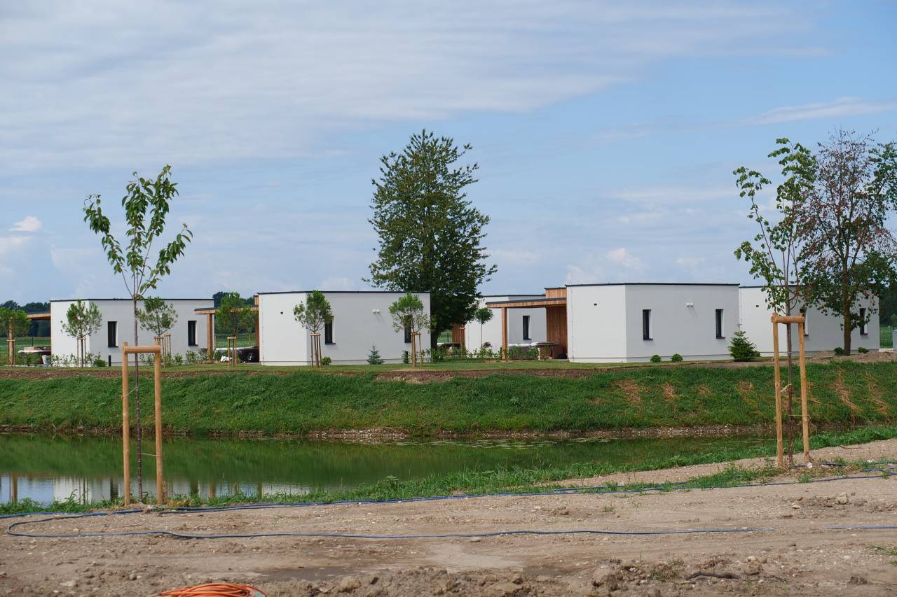 Na urejeni lokaciji ob mirnem jezeru zdaj stojijo moderne glamping hišice, zgrajene v sodobnem minimalističnem slogu in obogatene z naravnimi materiali.