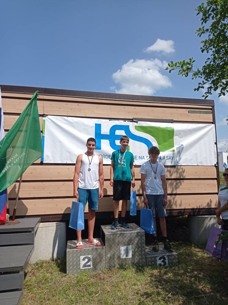Aljoša Sakač, Noah Šadl in Sven Šeruga so na ekipni tekmi premagali vso konkurenco in postali ekipni državni prvaki v spustu na divjih vodah med mlajšimi dečki.