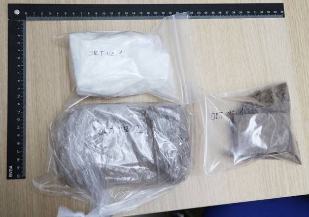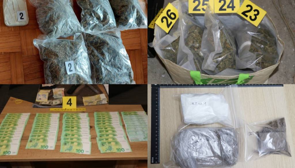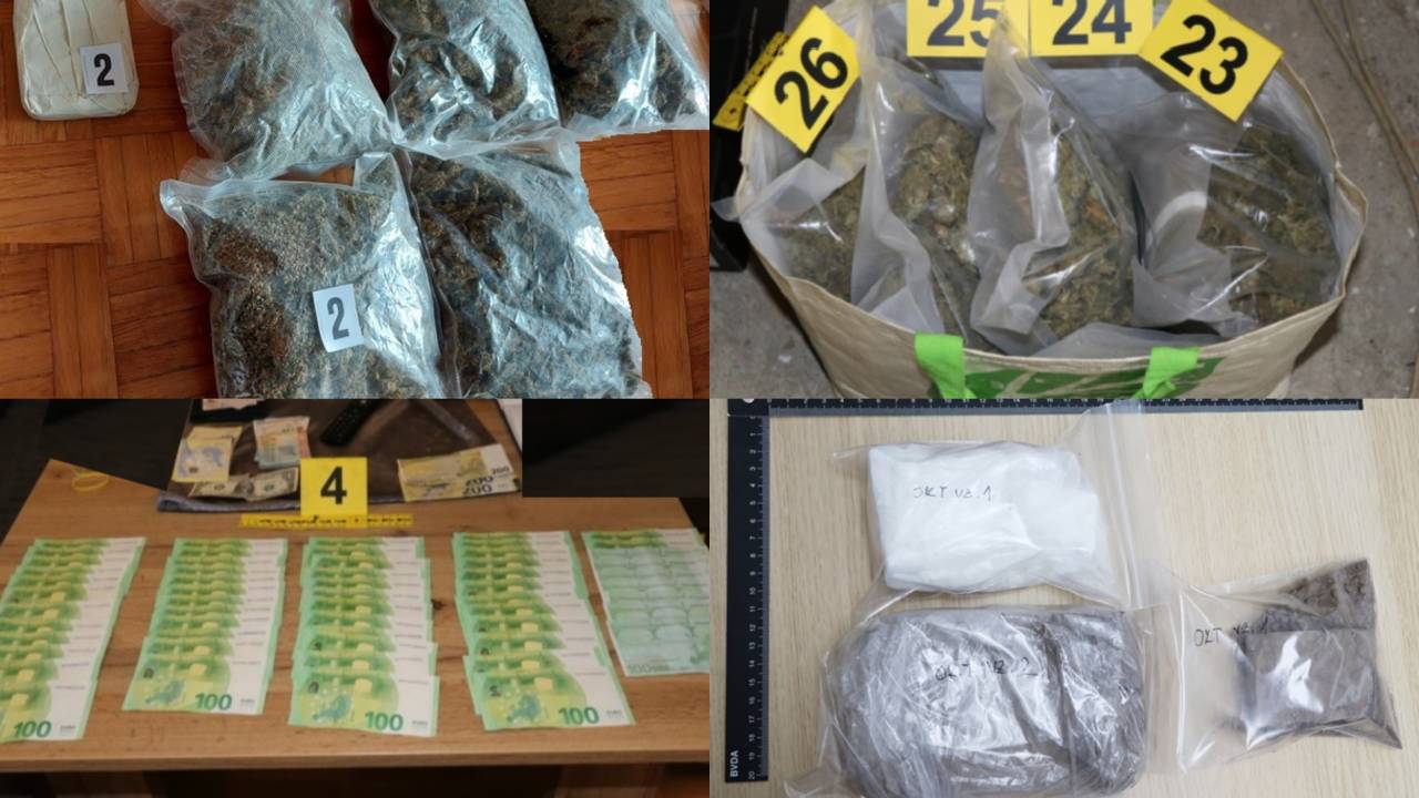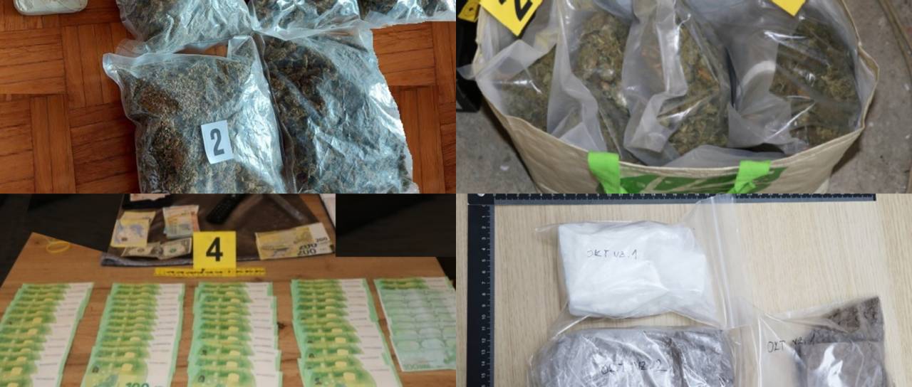 Med hišnimi preiskavami je bila zasežena večja količina različnih vrst prepovedanih drog in sicer približno sedem kilogramov prepovedane droge konoplja, približno 200 gramov prepovedane droge kokain in nekaj več kot 400 gramov prepovedane droge heroin. Prav tako je bila med hišnimi preiskavami zasežena gotovina v skupni vrednosti 18.545 evrov ter drugi predmeti, ki kažejo na preprodajo prepovedanih drog.