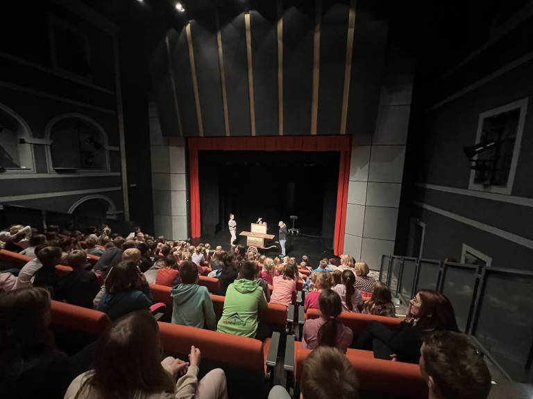 Ob zaključku delavnice so spoznali glavna lika iz predstave Princesa na zrnu graha, kar je učence navdušilo. Posebno pozornost je pritegnil gledališčnik Uroš Kaurin, ki so ga prepoznali iz filma Gremo mi po svoje.