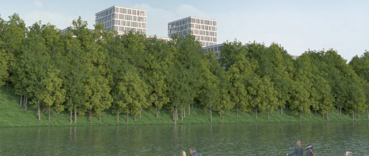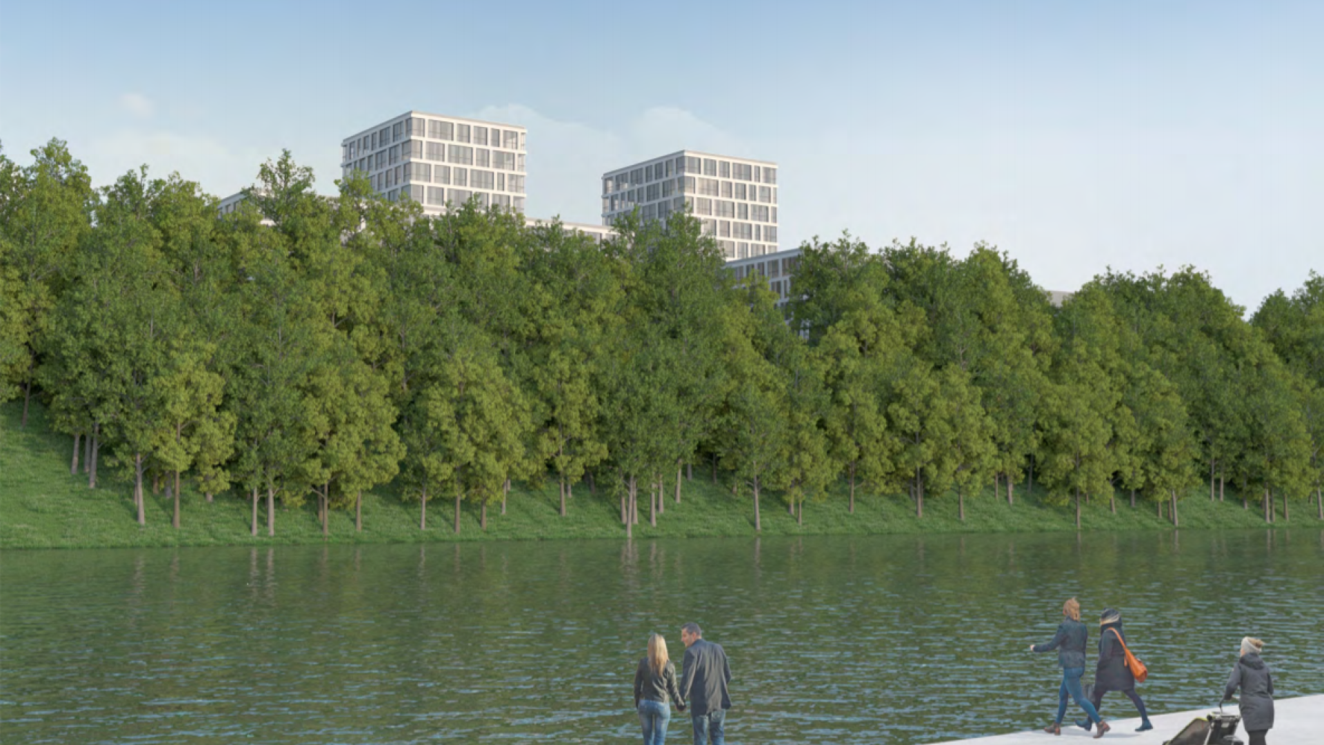 Ideja vključuje tudi okoli 300 parkirnih mest v kletni etaži in garaži - 225 parkirnih mest za stanovalce, 60 za javni program- in 24 izven objekta.