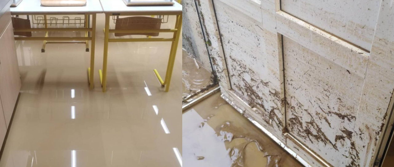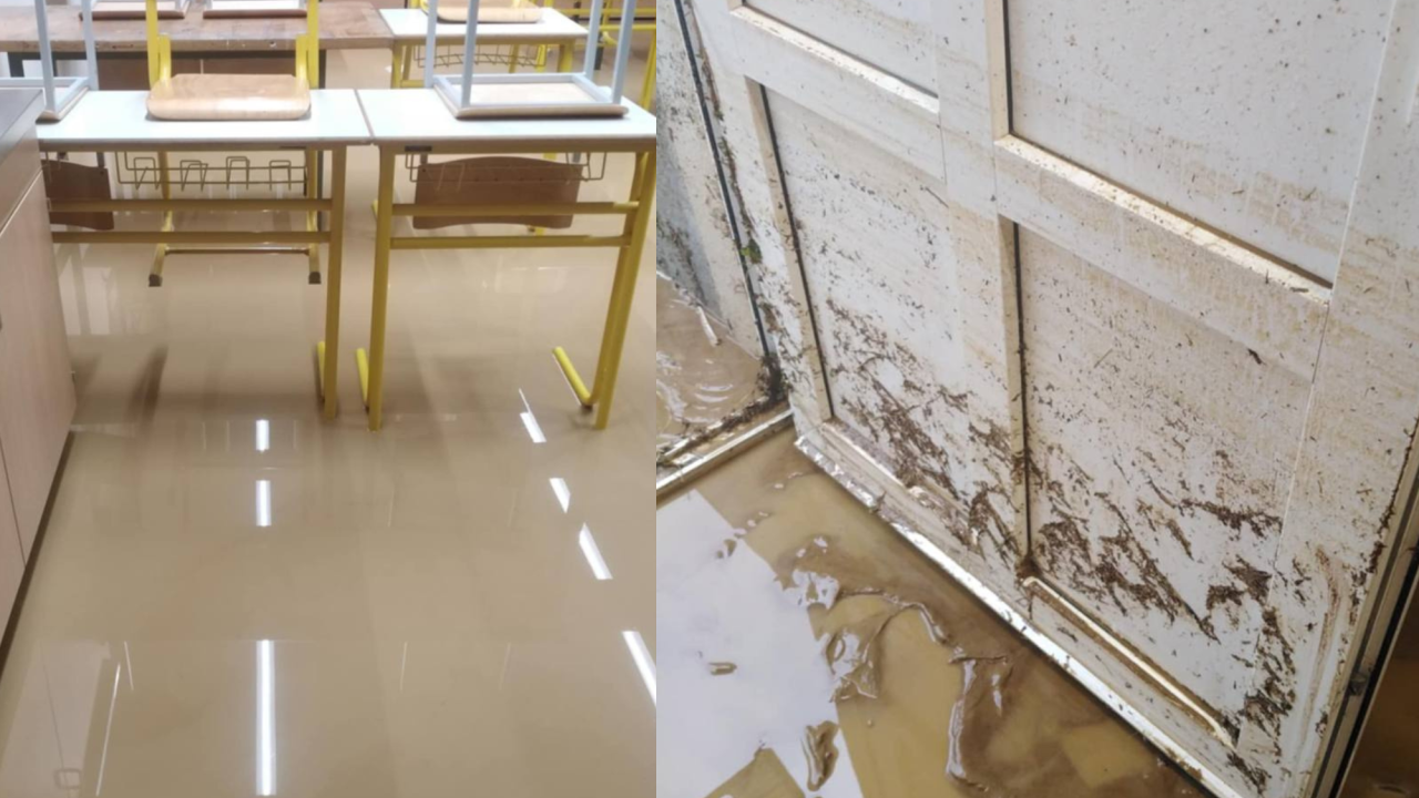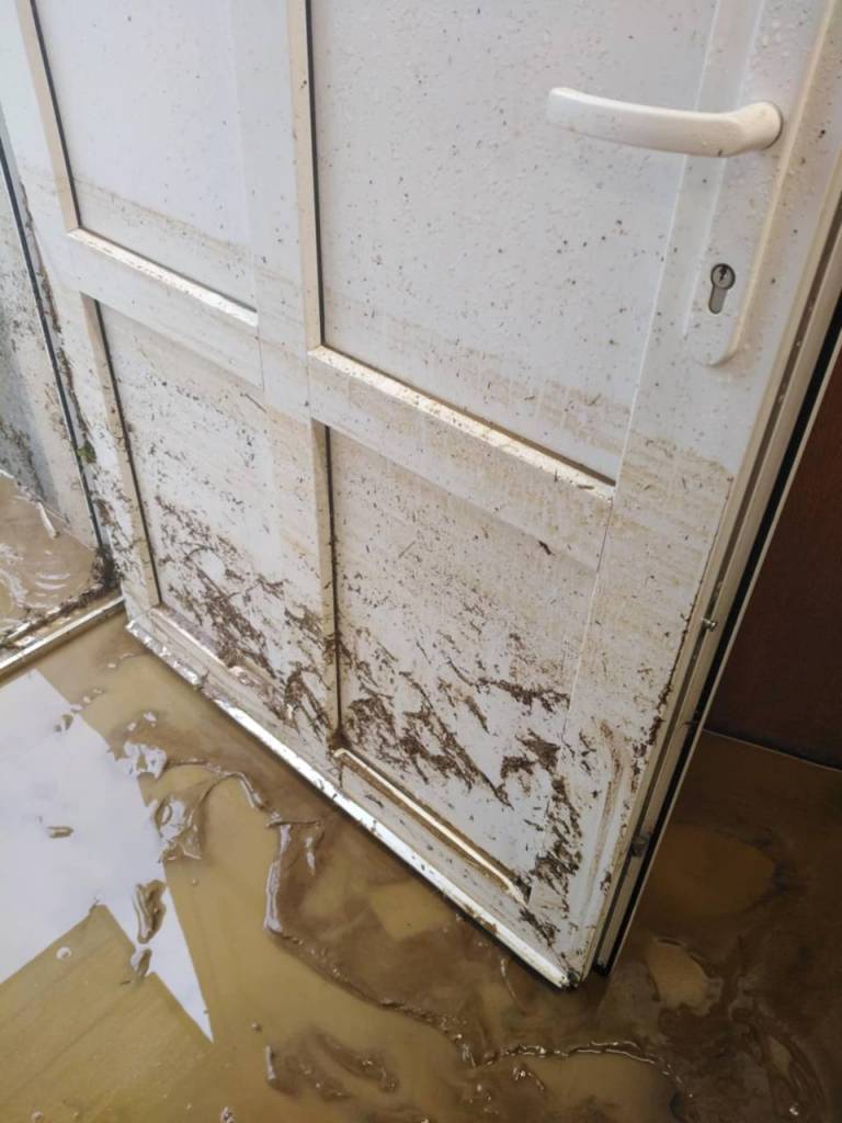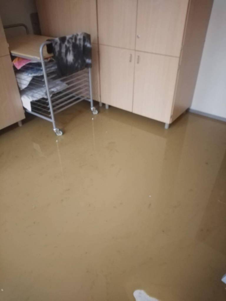 V Cezanjevcih je močan naliv poplavil prostore osnovne šole.
