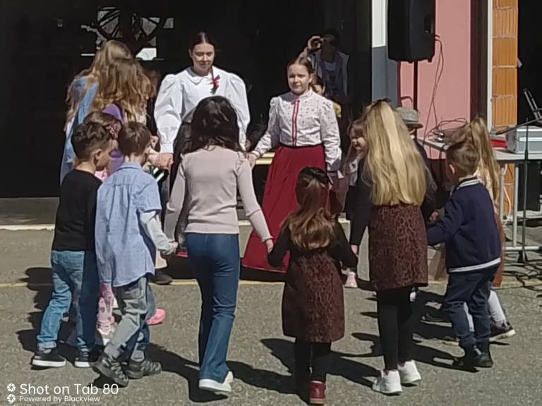 Dogajanje se je začelo z nastopi okoliških otrok, ki so se predstavili s prvimi folklornimi koraki. Za glasbene užitke sta na harmoniki poskrbela Lana Tompa in Anže Paldauf, medtem ko je domača folklorna skupina pod mentorstvom Slavice Kovačič navdušila z energičnim nastopom ob spremljavi Eve Tompa. Kovačič že 28 let predano prenaša folklorno dediščino na mlajše rodove.