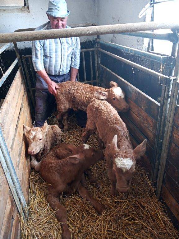 »Doslej smo imeli večinoma po eno tele, le redko dvojčke, trojčke nikoli, sedaj pa četvorčki. In čeprav so tako Murka, kot malčki bili zelo utrujeni, je nekaj ur pozneje vse bilo v najboljšem redu. Vsi štirje, enako kot mama, so že od začetka v odlični kondiciji, malčki so se hitro postavili na noge, se najedli preko dude in pričakujem, da bodo kmalu že poskakovali in se igrali,« nam pove zadovoljni Adolf, ki nam je razložil, sta se z Jolanko poročila pred dobrega pol stoletja, ko sta zaživela na njeni domačiji, katero sta urejala in širila ter vzgajala tri otroke (Matej, Melita in Metka).