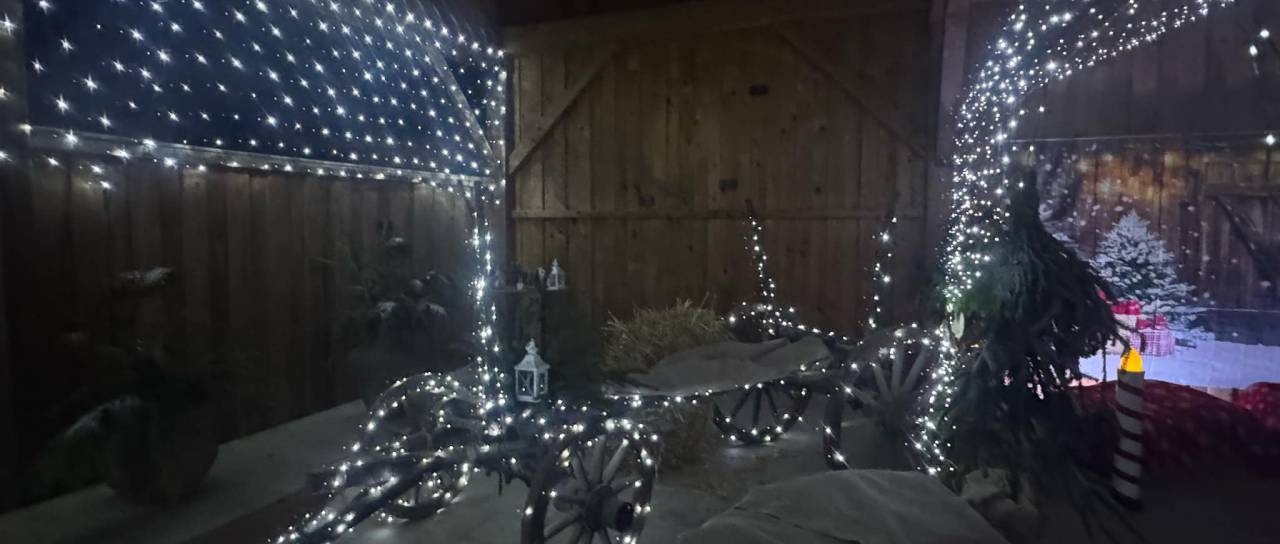 Gümlo na domačiji je zažarelo v tisočerih lučkah, ki so pričarale pravljično vzdušje in ustvarile idealno kuliso za fotografije ter praznično druženje.