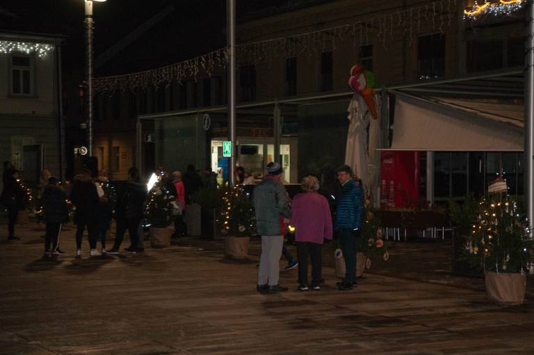 Na osrednjem trgu v Ljutomeru so se lučke kljub nekaj težavam na smreki in Mestni hiši prižgale malo po 17. uri. Ob tem dogodku se je tam zbralo tudi nekaj deset ljudi.
